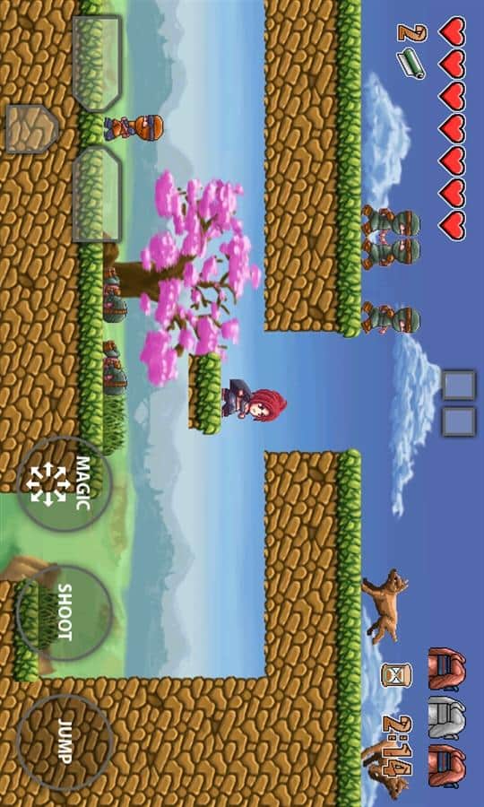Akane the Kunoichi - You play as a girl ninja, secretly loving his noble samurai and master Goro. One day an evil witch Hiromi with the help of his servants stole Goro, and you go to his rescue. Many enemies will try to stop you, you have to smash the army of the Hiromi to rescue his master!