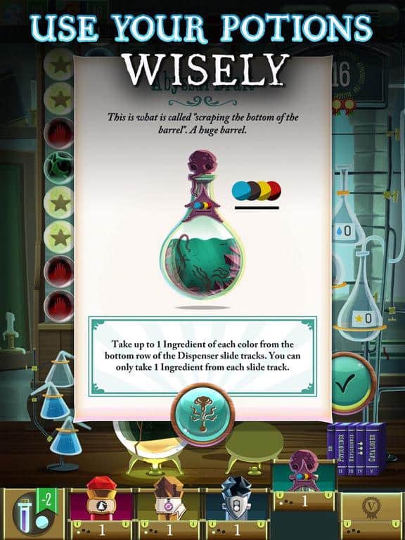 Potion Explosion – addictive game for IOS, brought together the genres such as "three in a row" and a card game. In this game you will play as an alchemist who needs faster than their rivals to make the right elixir. Your task will be to combine the same ingredients for three or more in a row and create a new one. Play with your friends and create new potions to earn points and bonuses. Discover new card with the ingredients and use them in action.