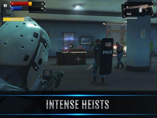 Armed Heist shooter for IOS where you control a gang that commits robberies. Take control of the gang, put them on and equip at its own discretion and Rob, while trying to perform all clearly and harmoniously and to leave from a pursuit. Follow over 70 different missions will be more complex each time, and different from the previous giving you the feeling of robbery as the first time. The game will please you excellent graphics, good sound and control with 3D Touch support. In the course of the game upgrade and improve your weapons and buy more modern.