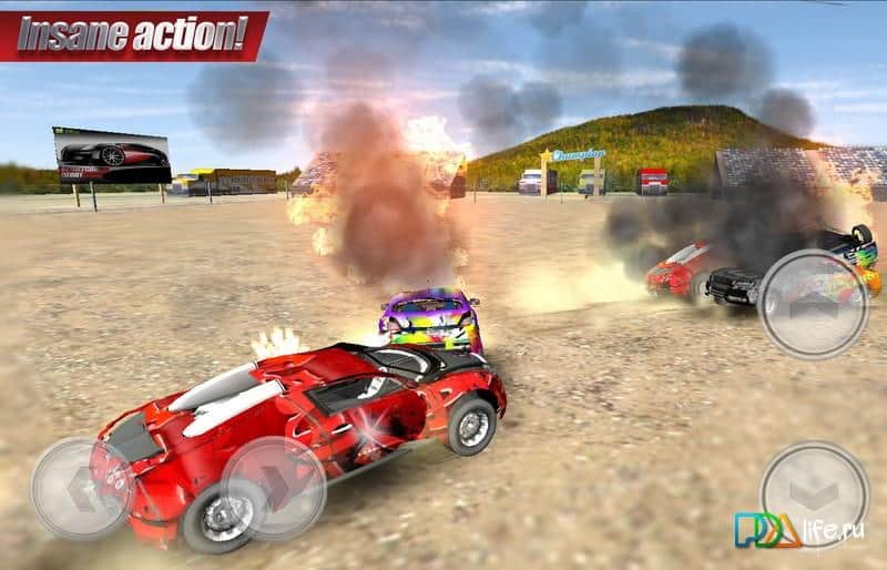 4x4 Sportcars Derby Racing - the roar of the engine drowns out all around, clouds of dust and screeching tires fill the stadium. Your task is to destroy as many vehicles as possible contenders, and for that all means are good. At your disposal a variety of equipment that will surely help you in your race to the bottom. The game perfectly works both on phones with low resolution and on tablets with high resolution.