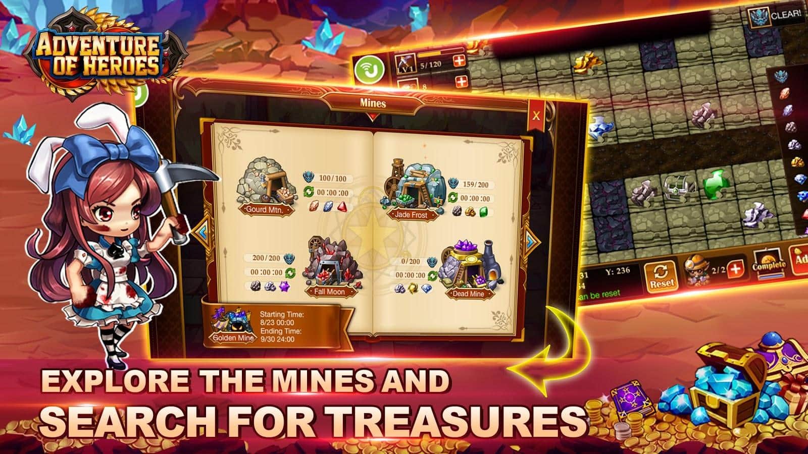 Adventure of Heroes – gather your invincible collection of heroes and challenge the forces of evil. Travel the vast open spaces of the game and gather your team. Each character in this game has its own unique set of data that you will be able to enhance and complement the abilities of other heroes to create the ultimate party. Explore the abandoned mine and find hidden gold and other treasures that will help you to increase the power of heroes. Challenge the strongest players from all over the world and fight them in the arena. The game features 20 strong characters, fantastic treasures and loads of different missions.