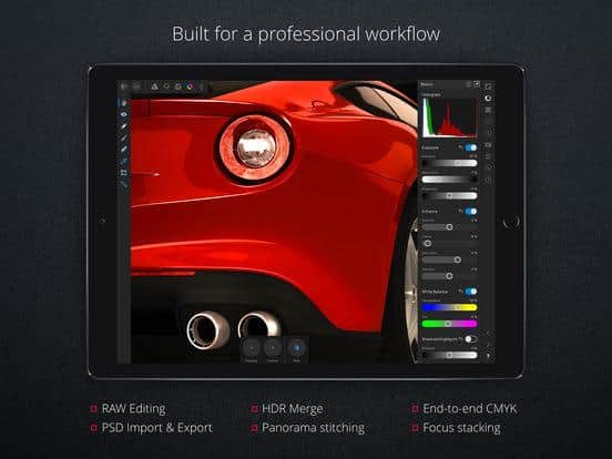 Affinity Photo is designed specifically for professionals in the field of editing and changing photos. It is fully optimized for the IPad and easy to work with.