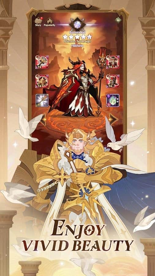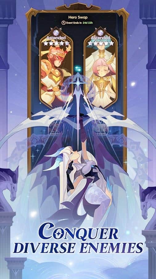 AFK Arena – role-playing game, where you assemble a team of heroes and fight enemies. Create your invincible team and fight in the arena receiving awards. Immerse yourself in a world of fantasy and travel the beautiful world, fight against evil and not letting him destroy the Kingdom of Esperia. Each character in this game possesses unique skills, characteristics and abilities. Assemble a team so that each character complemented the other and challenge real players. The maps in this game are randomly generated, allowing you to replay through the game.