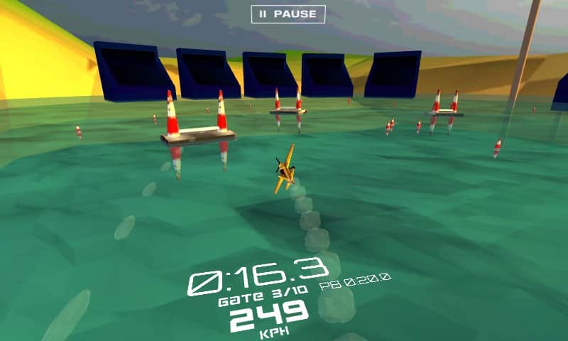 Air Racing - Animated three-dimensional Android racing planes on the route between the cones. Walk the track as soon as possible, play one of the best, maneuvering between obstacles. To be in the first place, you have to fly level, to correctly estimate the angle of the wings, thereby to determine your dive angle. The game has beautiful graphics with a good drawing of both aircraft and the surrounding world.
