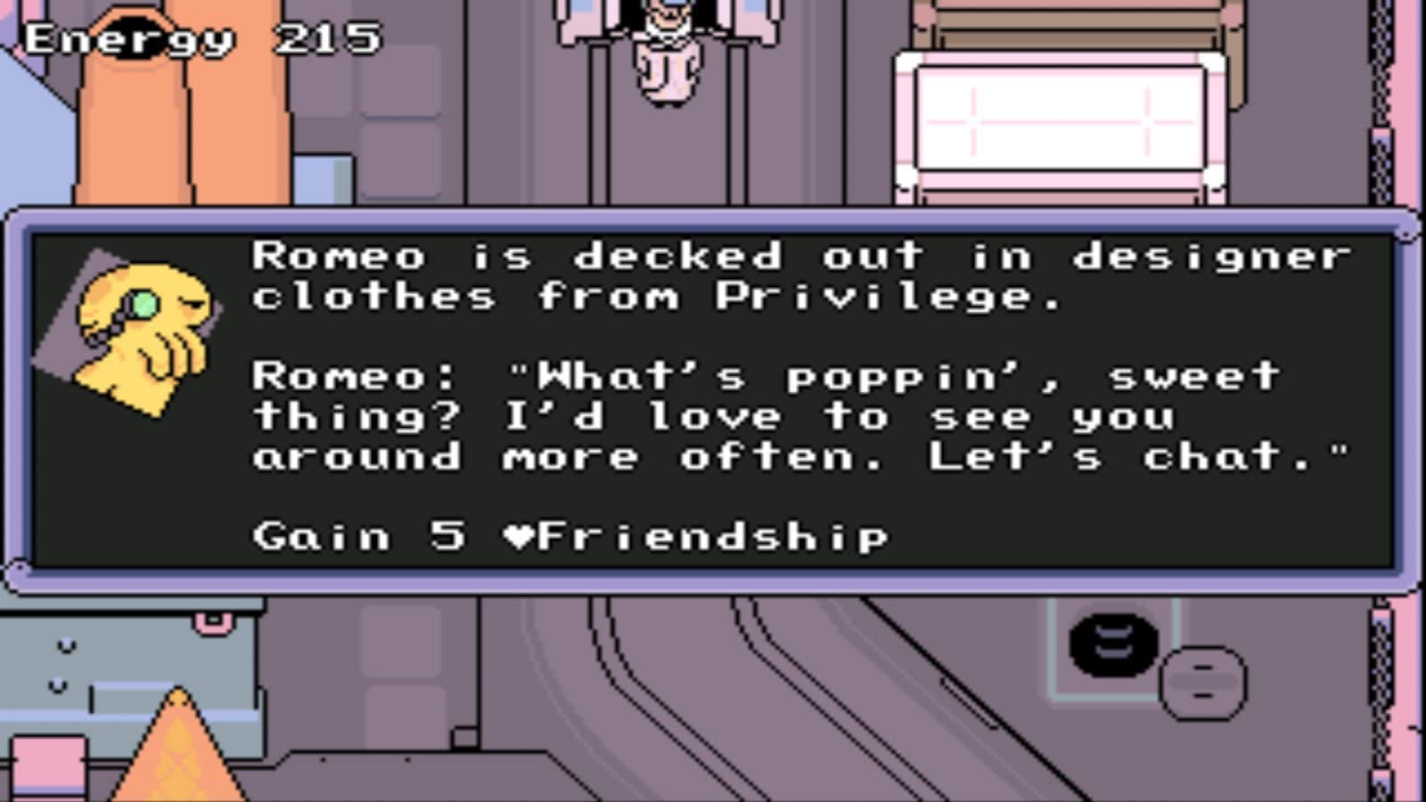 Romance and friendship with 20 characters, including a gangster, a dancer, a priest, a killer robot, etc.