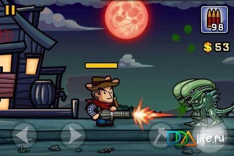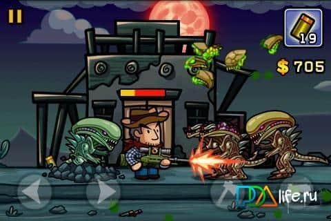 Aliens Invasion is a dynamic shooter arcade game about the invasion of alien beings on our planet. And again someone is trying to grab a tidbit of his native land. The main character can not stand for this outrage! He is armed from head to toe and goes to sort out the strikers! From the beginning, you will not be a very powerful weapon, but in the course of your progress you will be able to collect a tidy sum. which can be spent to upgrade weapons. And another tip - don't pass it by occurring homes - where you can get hold of ammunition and some money.