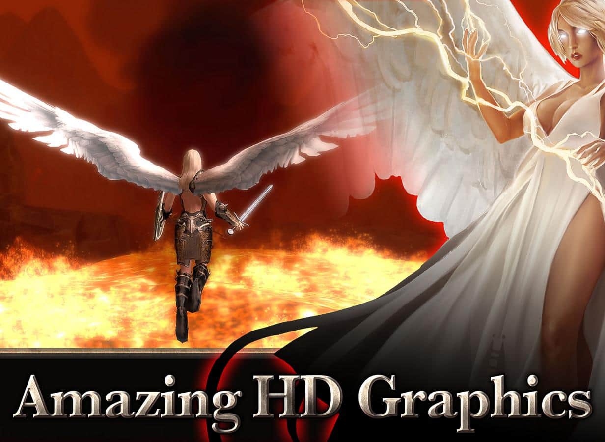 Angel Sword – полномасштабная многопользовательская RPG теперь и в ваших мобильных устройствах на IOS. В этой игре вы попадете в огромный мир, в котором обитают различные существа, начиная от героев и заканчивая ужасными монстрами. Выбирайте на какой стороне вы будете сражаться и вперед покорять просторы игры, свободно перемещаясь, плавая в местных реках или летая как птица. По ходу игры приобретайте питомцев, которые будут помогать вам сражаться с врагами, а также создавайте альянсы с друзьями и вместе проходите опасные квесты. Эта игра вас порадует развернутыми эпическими сражениями и большим количеством оружия и брони. Улучшайте вашего героя, приобретая в магазине необходимые ему для битвы предметы. Реалистичная смена дня и ночи с циклом в 24 часа порадует игроков и заставить почувствовать всю реалистичность игры.