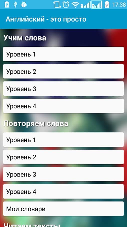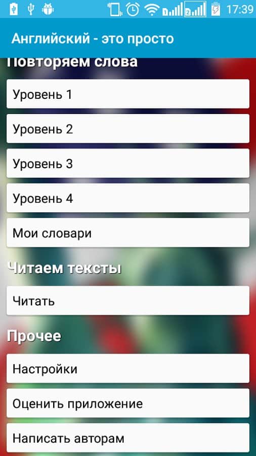 Английский - это просто – если у вас появилось желание выучить английский язык, тогда данное приложение поможет вам в этом начинании. С помощью программы можно выучить более 3500 слов, которые разбиты по темам и сложности их восприятия. Вы узнаете какие слова необходимо выучить в первую очередь, а какие можно оставить на потом. Даже с минимальной базой словарного запаса уже можно общаться на английском языке. При желании можно добавлять свои базы слов. Есть режим скоростного чтения, в котором вы можете проверить навыки чтения на иностранном языке. Ваш прогресс сохраняется и вы всегда можете начать с того места где закончили.
