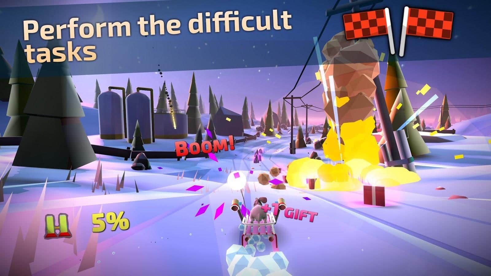 the Animal Adventure: Downhill Rush game for Android where you will drive on a sledge on snow-covered landscapes. Winter is coming, and you receive some Christmas cheer. Grab a sled and head towards adventure in this game. Drive to various locations in the city, village, snowy mountains and frozen rivers. Along the way overcome a variety of obstacles in the running of the bears and moving vehicles. Collect bonuses and gifts in the form of accelerators, energy amplifiers, bombs and more. Unlock new characters and unlock unique sled.