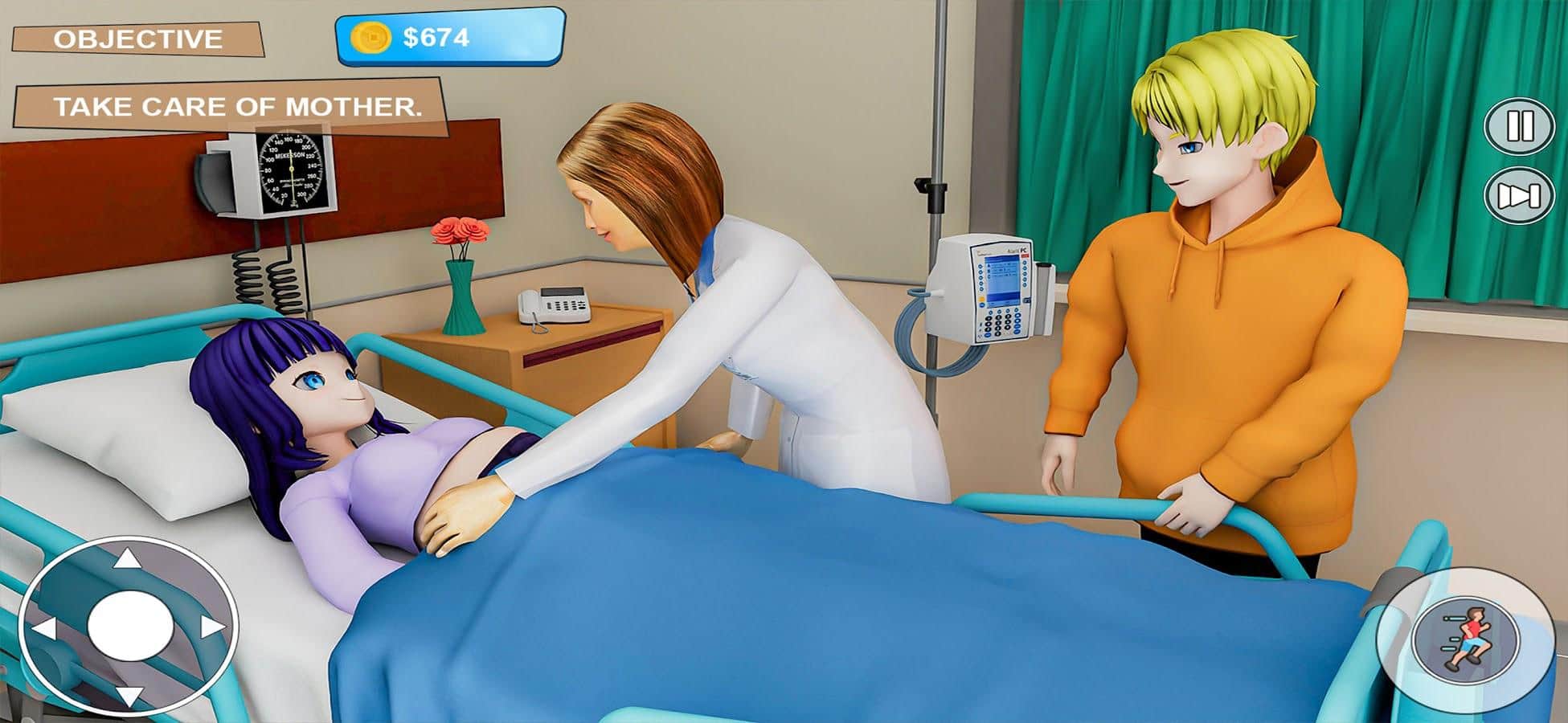 Anime Pregnant Mommy Games Sim - An exciting world of 3D simulator games for pregnant moms, where every mom simulator can feel like a part of a real family and go through incredible pregnancy adventures and caring for twins. These exciting games, developed by a virtual mom developer, will immerse you in the world of family care and joys. Get ready for engaging tasks such as taking care of the house, cooking delicious dinners, tending to the cozy garden, and much more. You can expect interesting challenges in the games, where you will take care of a virtual mom during pregnancy, providing her with all the necessary care and support. Help her manage daily tasks like doing the dishes, cleaning the house, grocery shopping, and much more.