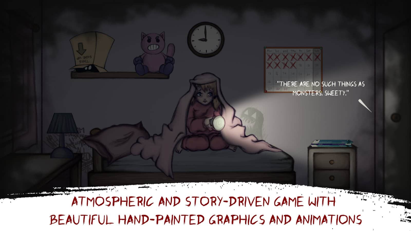 Anxiety of Alina – horror on Android, where you will protect Alina from monsters lurking in the dark. In order to save a little girl from the terrible monsters you need to Shine a flashlight in their direction to scare them away. Be extremely cautious and careful and do not let the fact that your resources are exhausted ahead of time. If you can help Alina to survive the night you will learn more about the history of this girl. Get weekly cost and spend it on buying resources, saving flashlight and restore courage Alina.