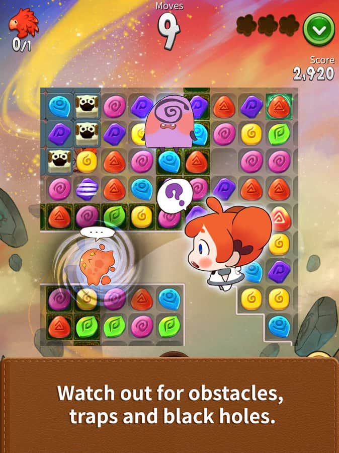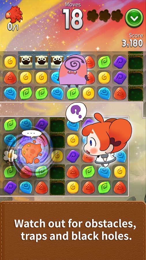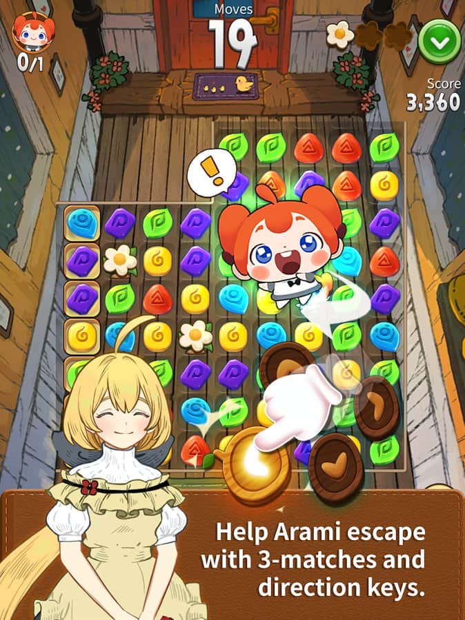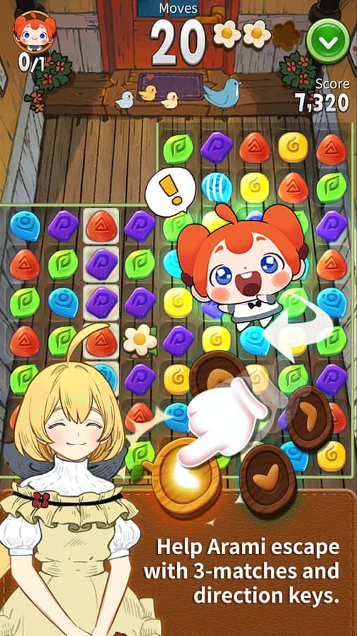 Arami Puzzventure – a game on Android where you will travel through the fabulous world. In this game three in a row, your task will be to create a series of magical stones and to pave the way for the main character. Our heroine named Arami went on a journey to find new friends, help her in this. Guide your heroine in the right direction for removing this from the field stones of a certain color. Solve challenging riddles and puzzles and complete levels in the minimum number of moves. Explode the same color stones and help Arami go in the right direction.