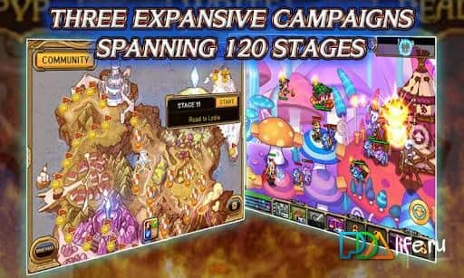 Arel Wars is a great strategy combine RPG and tower defense for android. You need to skillfully send your troops to destroy the enemy towers, but a travel to protect your. At your disposal can be up to 50 different combat units. Use logical thinking, develop strategy and tactics for command and control. To your attention more than 120 colorful levels and 8 different maps. For the victory in each level will give you experience that will need to improve your character. You can also combine the new skills of the hero (all in the game 3 characters: quick «Hume" cruel “Buster» or a resourceful "Elven”) for maximum effect. Towers, units and skills can be improved, and strong characters can learn special magic. It is worth noting the innovation as a split route of attack and defense. So you can send your fighters on the same path, and the enemy will move his army by another, and yet you fight, the enemy army gets to your castle. Another nuance is the ability to send into battle your hero, who will make a decent gain in attack of your troops. And of course it is impossible to ignore the fact that you can play against other players online! So go ahead - download the AREL WARS and enjoy your new cool toy for your android!