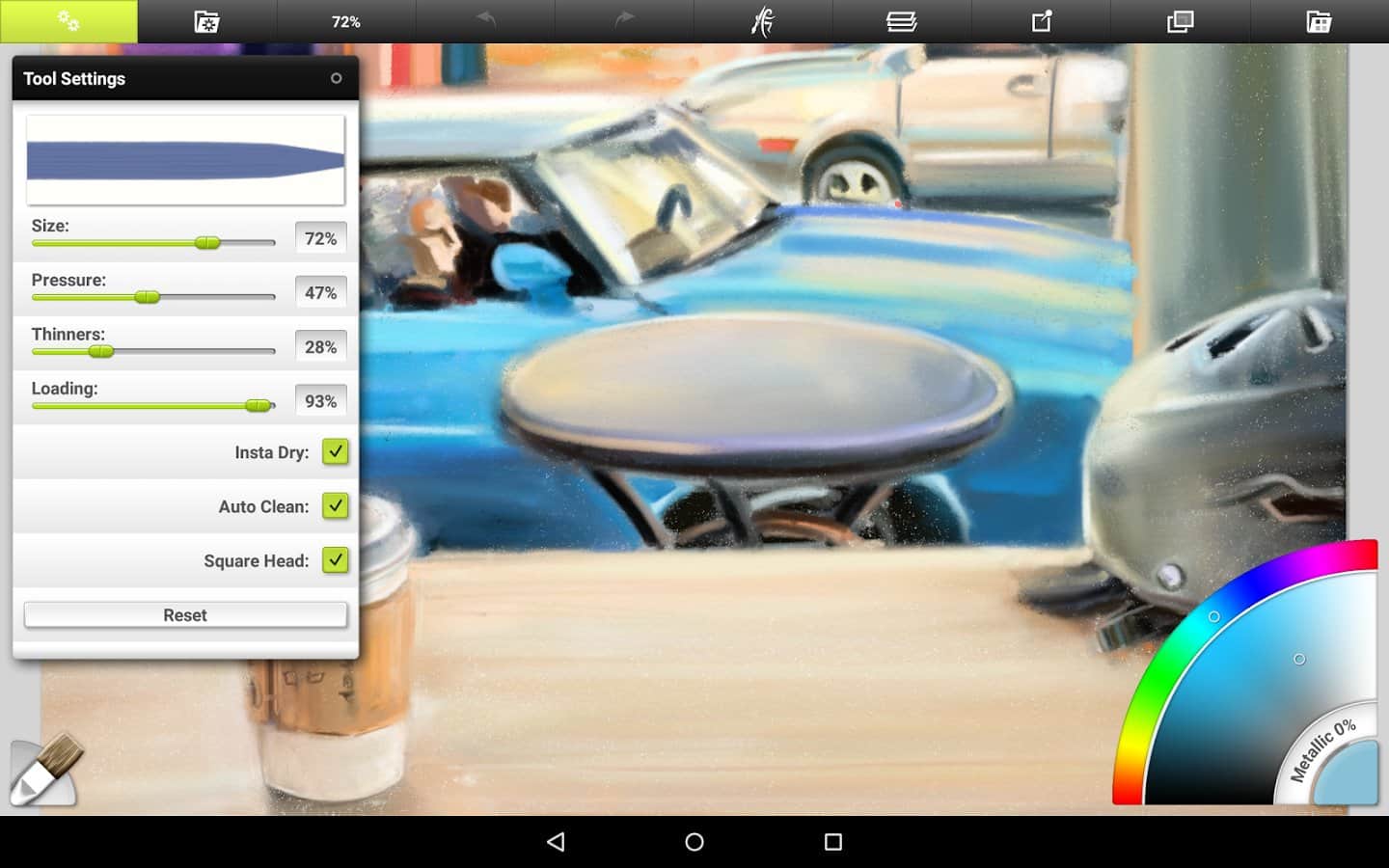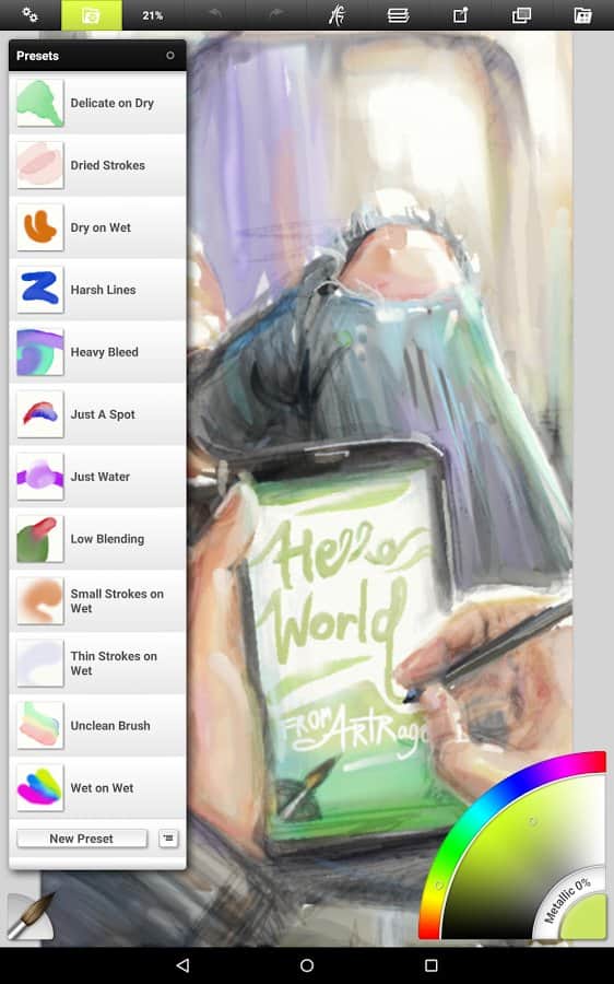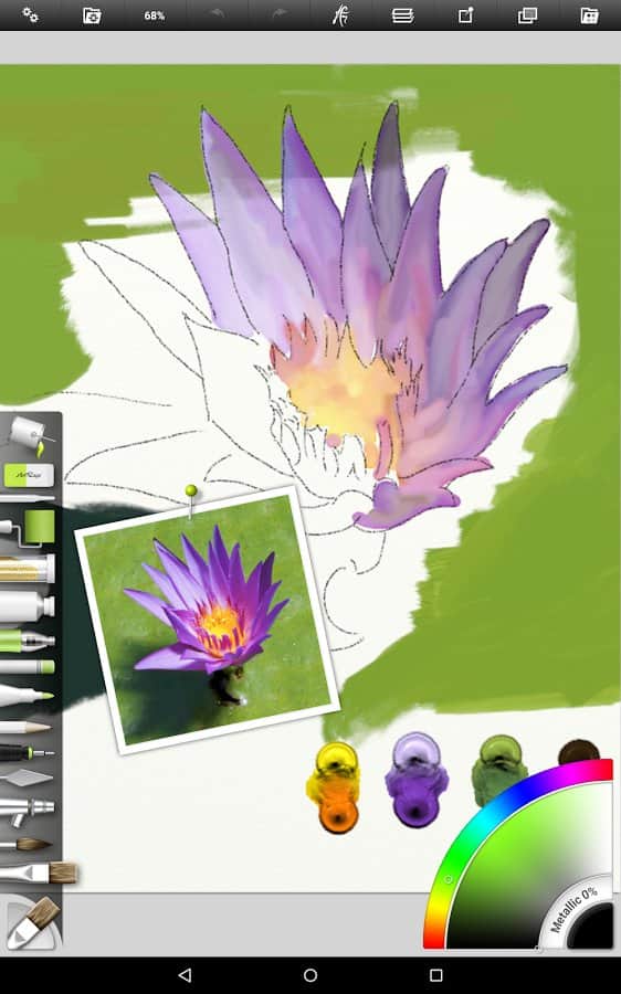 ArtRage - проявите творческий подход к созданию настоящих произведений искусства. В ваших руках полноценный набор инструментов для рисования маслом и акварелью. Попробуйте рисовать карандашом и получите новый положительный опыт рисования на вашем мобильном устройстве. Приложение отслеживает сколько краски осталось, на сколько она влажная и т.д. на вашу работу так-же влияет влажность кисти и бумаги и также холст на котором вы рисуете. Любую фотографию вы так же можете превратить в картину, стоит только настроить фильтр. Приложение предназначено для работы на различных разрешениях и поддерживает все ориентации экрана.