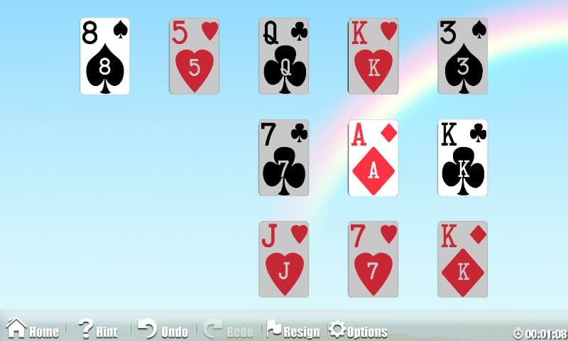 Astraware Solitaire is a great card game for Android, where are collected the most popular solitaire. In this game you will find over 12 of the most famous in the world of card solitaire such as Solitaire, Pyramid, Spider, Clock, Canfield, Harem Sultan, Four Seasons Delight, Golf, calculation of an Idiot, Freecell and others. Play this game at any free time and get great pleasure from a variety of games. Play games and follow the rules for each game. Pick a suitable background for the game and change the card at its discretion. Go into settings and connect option tips or auto-move cards.