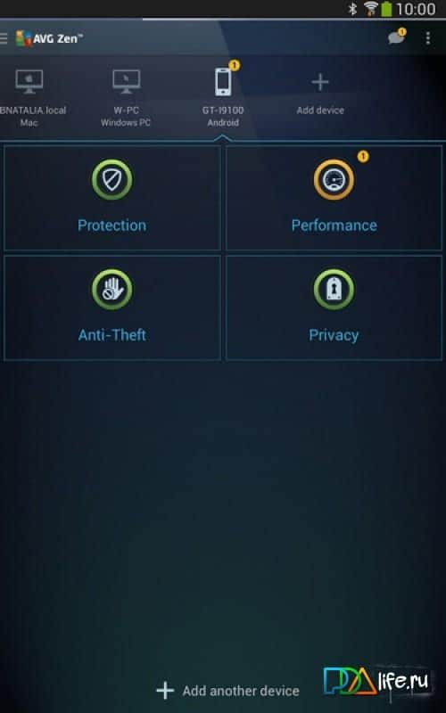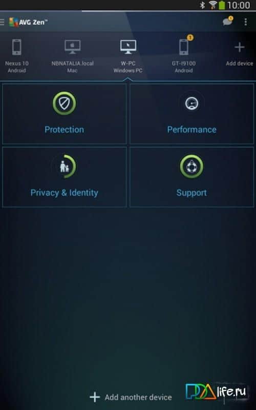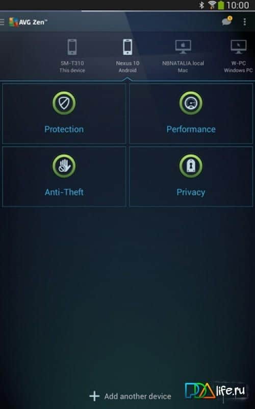 AVG Zen – Protect more devices – с помощью приложения вы всегда сможете воспользоваться доступом ко всем android устройствам в любое врtмя и в любой точке земного шара. Сода единый интерфейс для различных устройств, всё просто! Помимо всего прочего, приложение проверяет ваши устройства на вирусы. Подключать новые устройства можно в любом количестве, каких либо ограничений на количество подключаемых девайсов нет. Приложение усиливает защиту, повышает производительность и уделяет повышенное внимание конфиденциальности ваших данных. Для того чтобы можно было удалённо управлять всеми устройствами, необходимо установить программные обеспечение на все устройства.