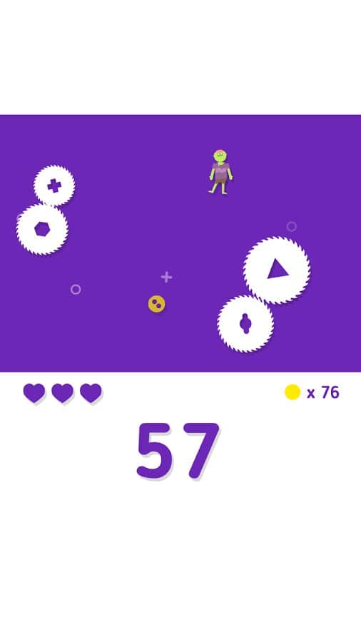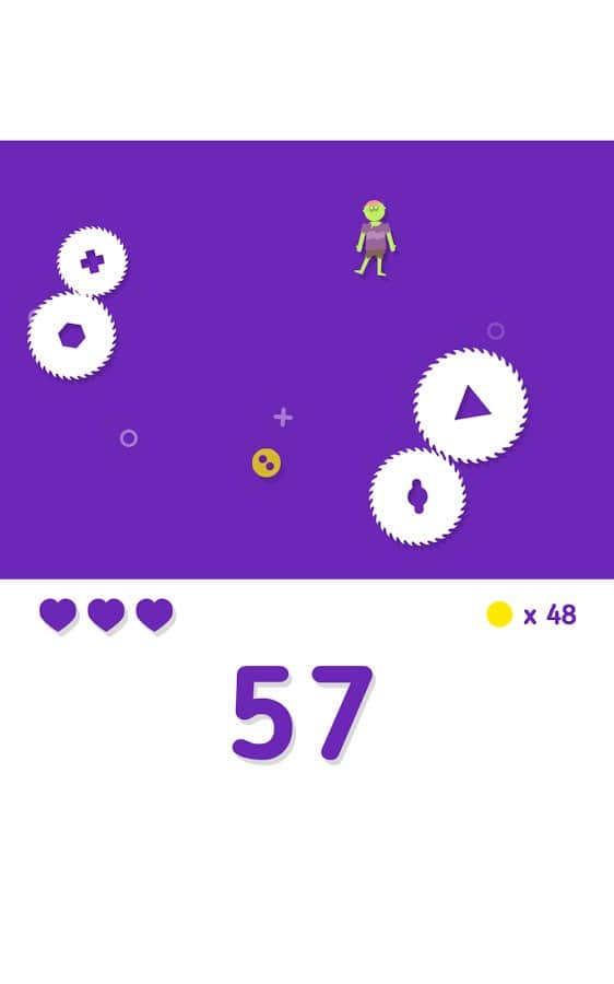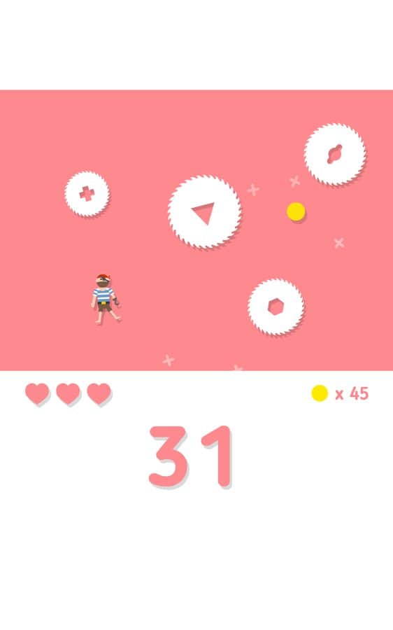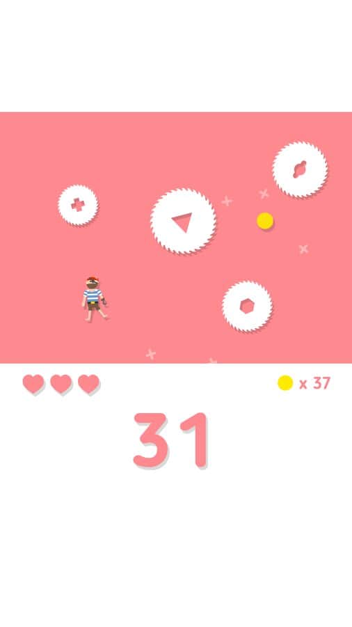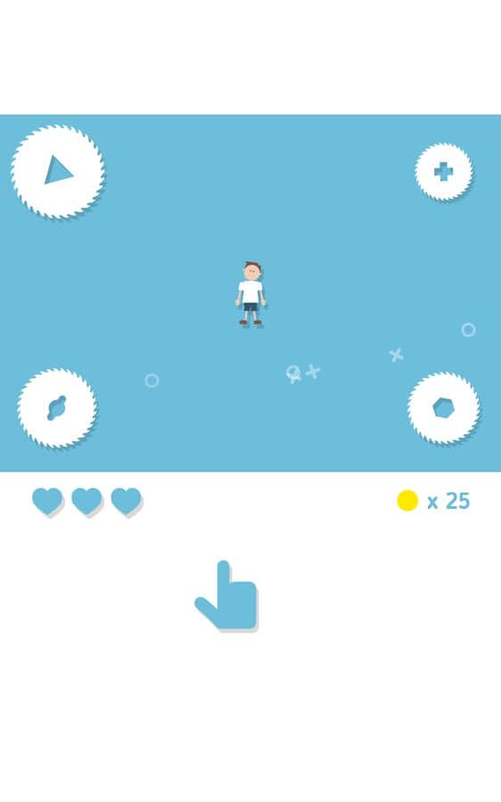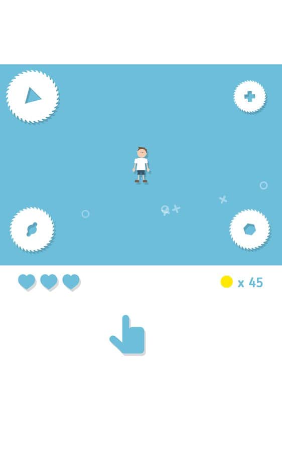 Студия разработчик Noodlecake хорошо известна обладателям Андроид устройств благодаря своим хитовым аркадам, таким как Zombie Road Trip, Punch Quest и многим другим. Большинство проектов этого разработчика отличаются простым, но в тоже время продуманным и увлекательным геймплеем, а так же отличной графикой. Видимо Noodlecake ришили попробовать себя в несколько ином жанре и выпустили на наш суд хардкорную аркаду с визуальным исполнением в минималистическом стиле. Все действия развиваются на одном игровом экране, ваша задача управляя, при помощи свайпов, человечком постараться как можно дольше не попасть под вращающиеся пилы и собрать как можно больше монеток, которые можно потратить на то чтобы разблокировать дополнительные бонусы.