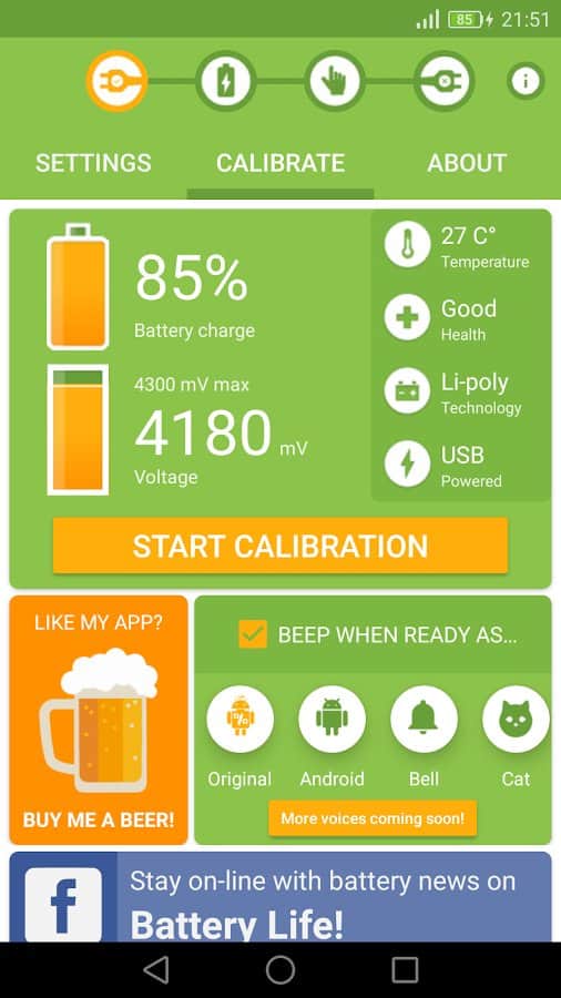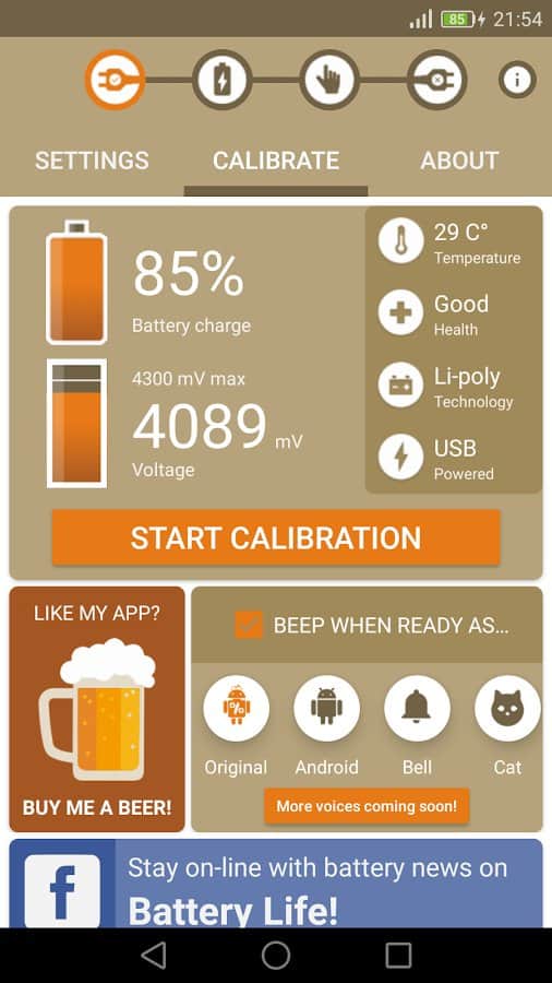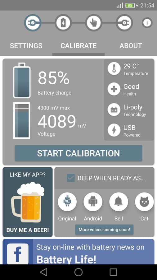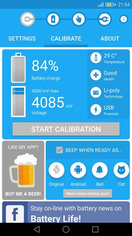 Battery Calibration - In the modern world, the smartphone has become an integral part of people's lives, and one of the very important details of all devices is the battery. Monitor the health and good performance of battery is very important, because over time it deteriorates and will be discharged very quickly. Sometimes it's a problem of the battery in addition to a service center you nothing will help. Calibrate the battery using this app, configure it to your liking, and follow it with data.