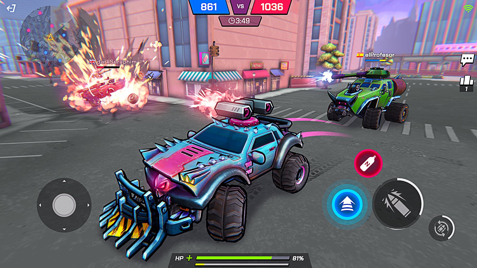 Battle Cars: Nitro PvP Shooter - Get ready for explosive PvP battles where each fight is a mix of dynamic gameplay and crazy shootouts. You'll face real players from around the world, battling it out in epic car combat. The better you build your vehicle, the higher your chances of victory!