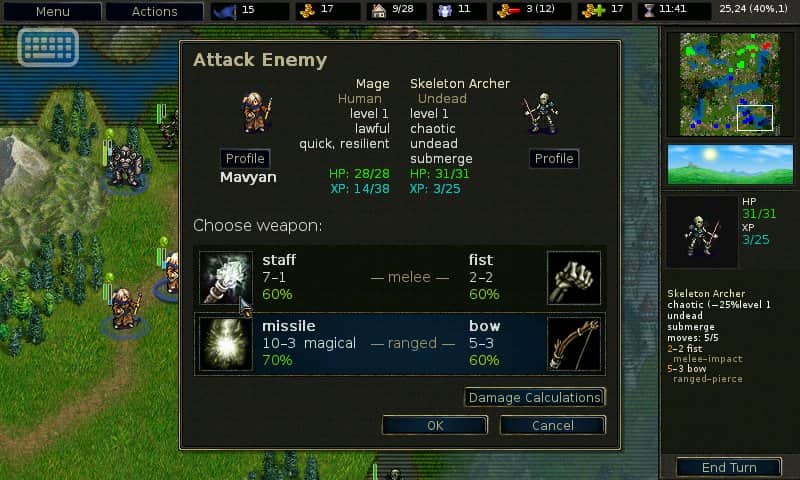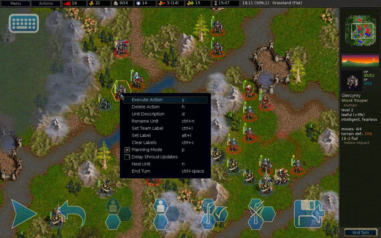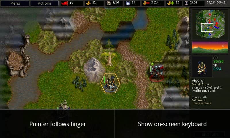 Battle for Wesnoth - familiar to many on PC, turn-based strategy with elements of action and RPG. You start building your army from scratch - choose a faction for which you fight - they are already 6, and also race to choose from - 20 types, from orcs to dwarves, etc. Then you train and develop your heroes to military aces to your created army was the most powerful and trained in order to win the battle you got it with minimal losses. And remember, for each battle depending on the terrain you have to choose wisely the troops is half the battle! Well, call the enemy to battle and reclaim the throne of Wesnoth true ruler!