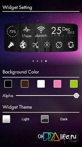 Beautiful Quick Setting beautiful and, most importantly, a convenient widget for Android feature of which is that on the screen of your smartphone or tablet will display basic system configuration Android. (2x4 size, 480x800 resolution and is optimized for resolution of 720x1280).