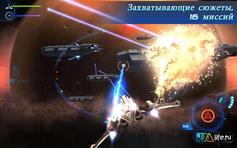 Beyond Space is a Great space simulator for Android, which has a high-quality three-dimensional graphics and very addictive gameplay. You will find a variety of planetary systems, nebulas and asteroid fields. Explore them all! The game is very good plot which has 16 missions. Your choice of one of nine different spaceships that can be upgraded and improved.