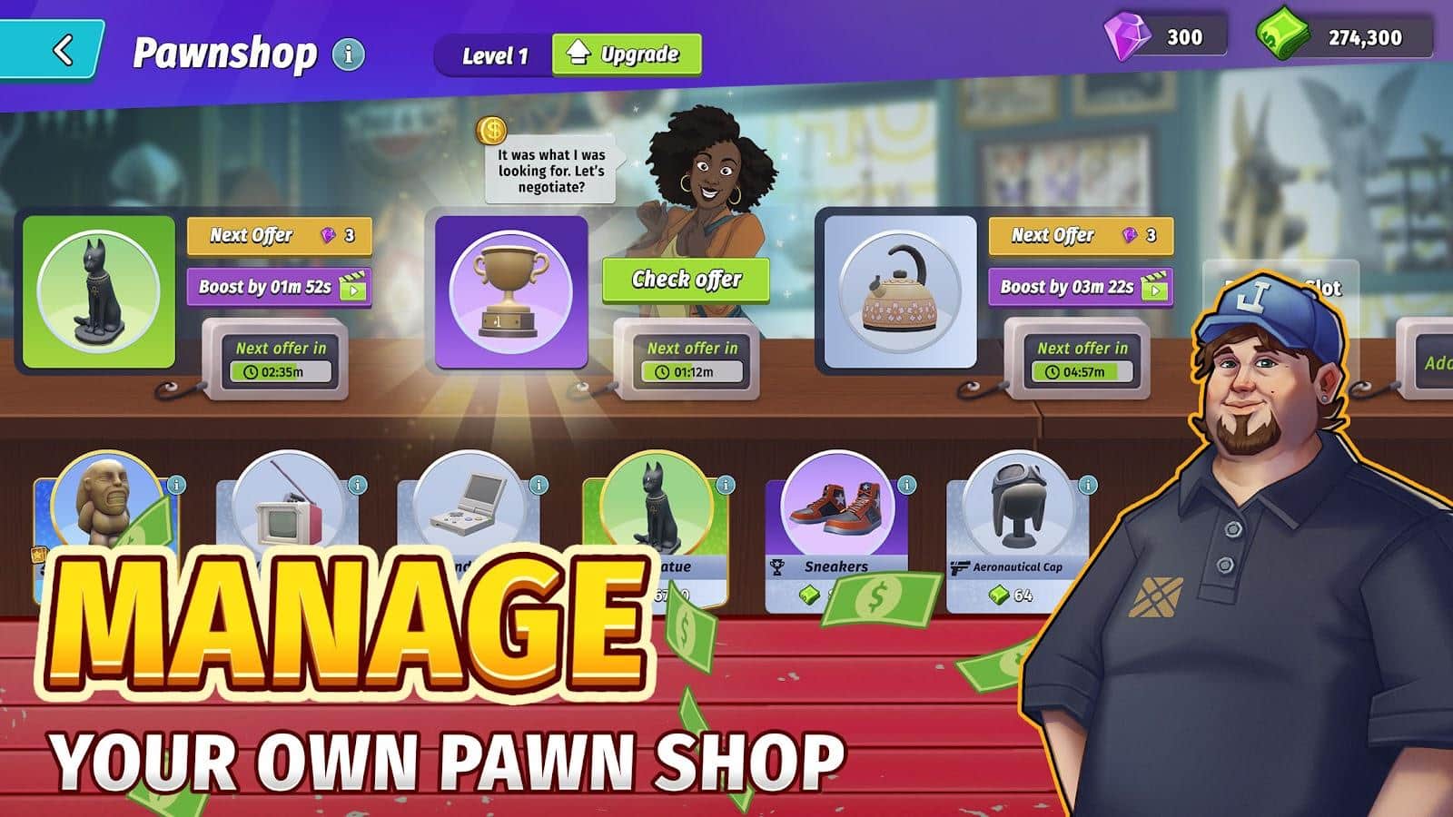 In the game Bid Wars 3 - Auction Tycoon, you will take part in auctions, where you will compete with other players for the right to own various items. Your task is to make the most profitable bid and get the desired item. You will act as a treasure hunter who travels the world and takes part in auctions. Your goal is to find the most valuable items and sell them for maximum profit. You will have to make deals, collect treasures, build a pawnshop and develop your legacy. It is important to be fast and quick-witted to outsmart competitors and make profitable deals.