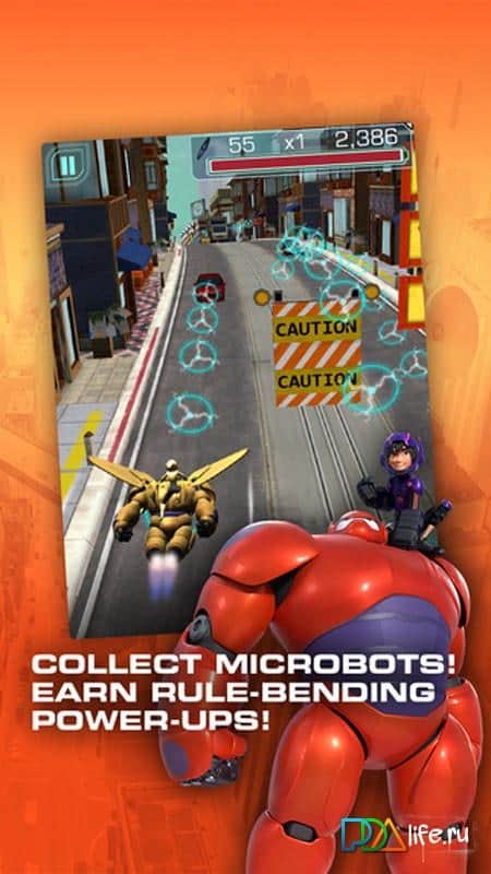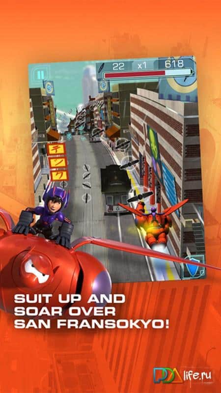 Big Hero 6: Baymax Blast - игра создана по известнейшему мультфильму "Город героев". Итак, динамичные и яркие приключения на улицах Сан-Франциско. Экипируйте Баймакса и парите над городом в поисках следов похищенных микроботов. Разблокируйте новые игровые персонажи и технологии, наслаждайтесь видео, а также не забывайте и про напряженный и динамичный геймплей - преодолевайте препятствия, прорывайтесь через барьеры, получайте бонусы, проходите сложнейшие миссии на "отлично".