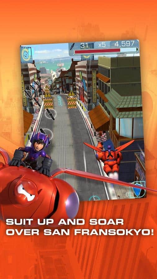 Big Hero 6: Baymax Blast – a fascinating runner from Disney created the plot of the famous cartoon "hero". Embark on a fascinating journey with his hero on health Baumaxa. Equip it in a protective suit and explore all the streets of San Francisco looking for traces of stolen microbots. Overcome all obstacles on your way, collect enough points to unlock new characters you know from the cartoon and watch interesting video clips. Upgrade your heroes in the lab, giving them new and interesting abilities, and collect interesting stories about each individual character.
