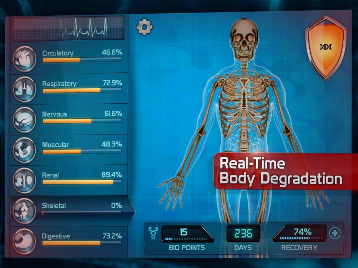 Bio Inc. - Biomedical Plague and Infection RTS – a game for IOS, where your main task will be to create an incurable disease. In this game you will find yourself in the distant future, where human life is threatened by various facts, such as the environment, nutrition, mental and physical activity, obesity and many others. Your task will be using all these factors to create an incurable disease which napoddat treatment. You will have one Guinea pig so you'll be able to put their experiments. Apply it a variety of adverse facts, do not let him to go to doctors and play sports. Destroy his body from numerous pathogenic medications and follow the disease development.