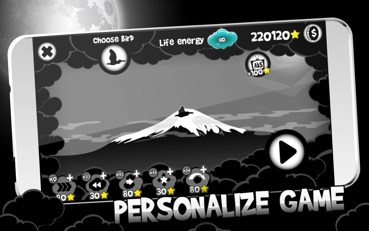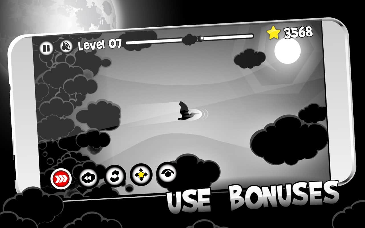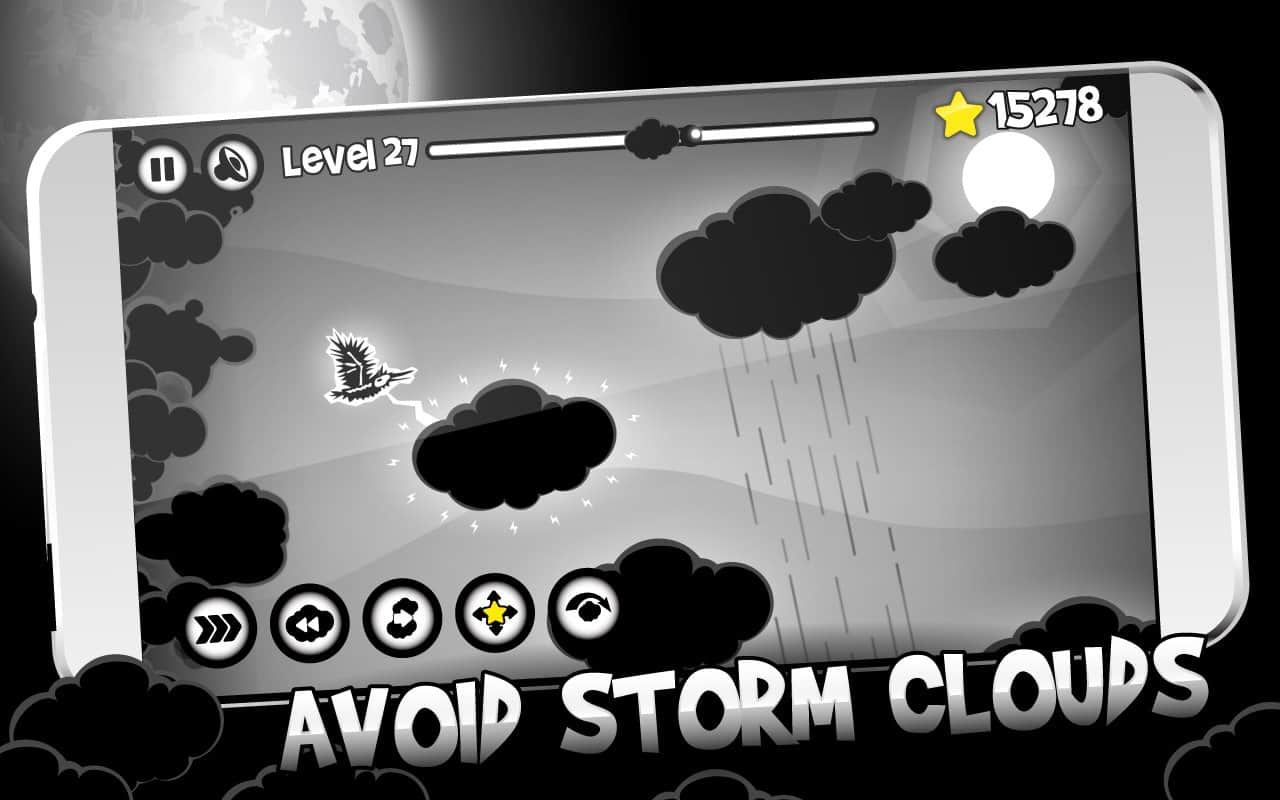 Game: Night Sky (Unreleased) – guide your bird through various levels of this game trying to get her away from the approaching storm. Move your bird forward and avoid all the obstacles and hurdles on its path, in the form of clouds, rain and wind. Along the way, collect gold stars and bonuses and fly as fast as possible so you are not caught up with the storm. During the game open up new birds such as Hummingbird, penguin, bat, and even a mechanical bird. If you can't pass a level, then enlist the help of bonuses that will help you to: accelerate away from the approaching storm, avoid clouds, collect as many stars as possible and use the teleport.