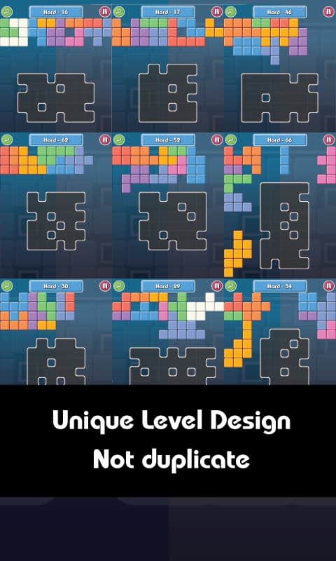 Block Hole is an interesting puzzle game for Android where you have to fill in the various details. The playing field has a different size and shape, your task will be to place the various parts so that they all fit, and left not a single space. Show all your powers of observation and logic to make the least number of moves to complete the level and earn enough points. Each new level will delight you with completely unique fields and numerous details that are around. In order to pass the level you need to find a single right decision. The game features over 2000 levels, so you will not miss.