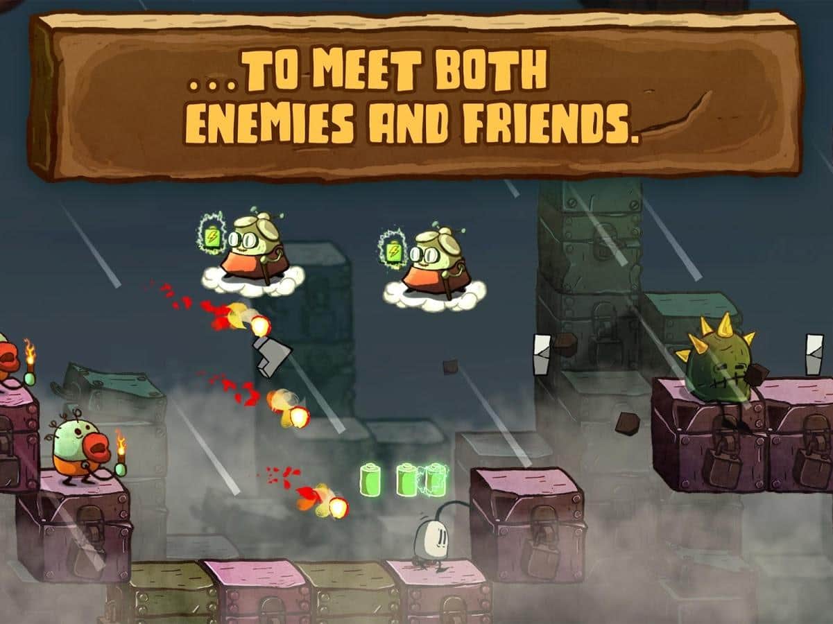 Blown Away: First Try – help a mysterious creature named Hendrik who are homeless with magic shoes. The house of our hero blew the wind and scattered to all the levels and now you have to help the hero to pass all levels and collect the fragments. Shoes possessed by our hero can teleport. Move through different levels with many obstacles and enemies and go through walls, pits and obstacles. While you will be in motion, your shoes will be charged if you stop, the batteries will reduce the charge. Complete 120 levels and explore four different worlds. During the game you will receive additional opportunities and new skills.