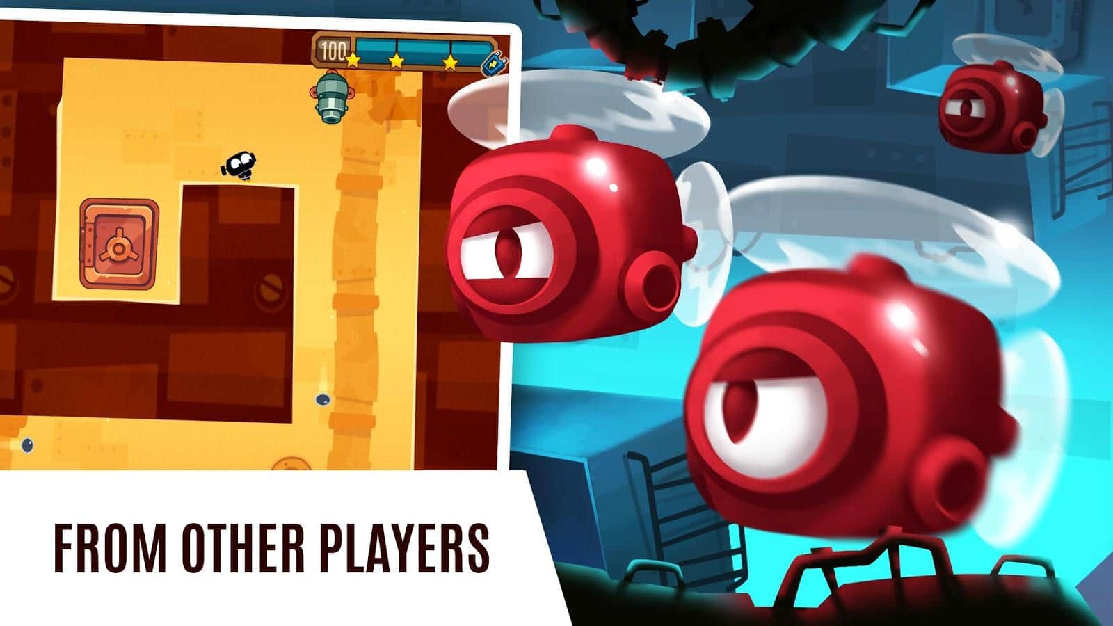 BOB: Boss of Bots - arcade shooter with elements of action where you will have the opportunity to build their own lair, equip it, and then show it off or admire the design of the other players. The game has more than 45 locations in which you can play in single mode or against other players, while you will have no limits, beat your opponents, take their gold and weapons, create your own objects, upgrade your den. Easy control with 2 fingers, great graphics and a versatile dynamic gameplay will let you have fun alone or with friends.