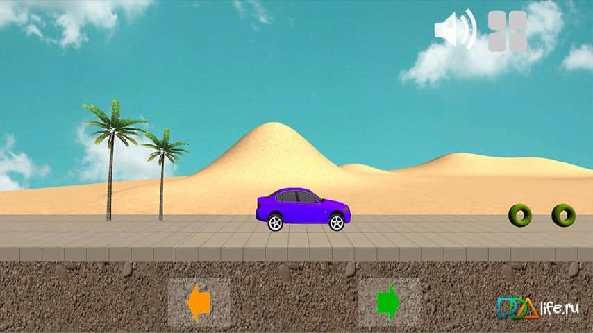 Great trip for kids is a unique race for the youngest users of smartphones - toddlers from 1 year. Imagine your little clever and will be able to choose the machine where to go, and also to travel to different places and studying different subjects, for example, the mill will be able to go up the hill and down into the cave, take a ride on the Elevator, feel the charm of the descending bridge, and learn about different geometric shapes that turn into fireworks of colorful splashes. Only 2 levels but how many emotions! The first level of the mountains and plains, and the second is a desert with palm trees! The feature of the game is that the control is specially adapted for ease and simplicity, so that your child will easily be able to beat the game!