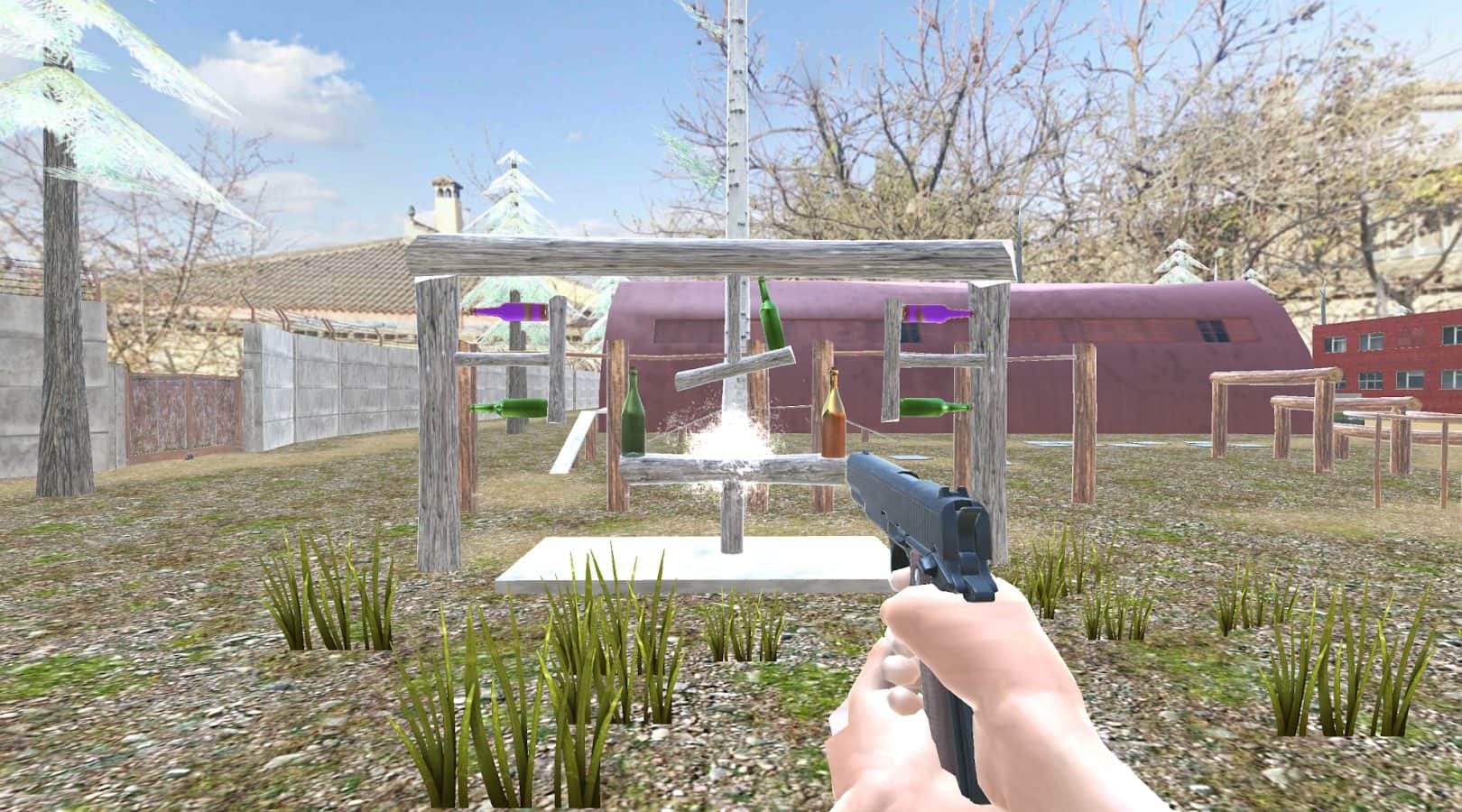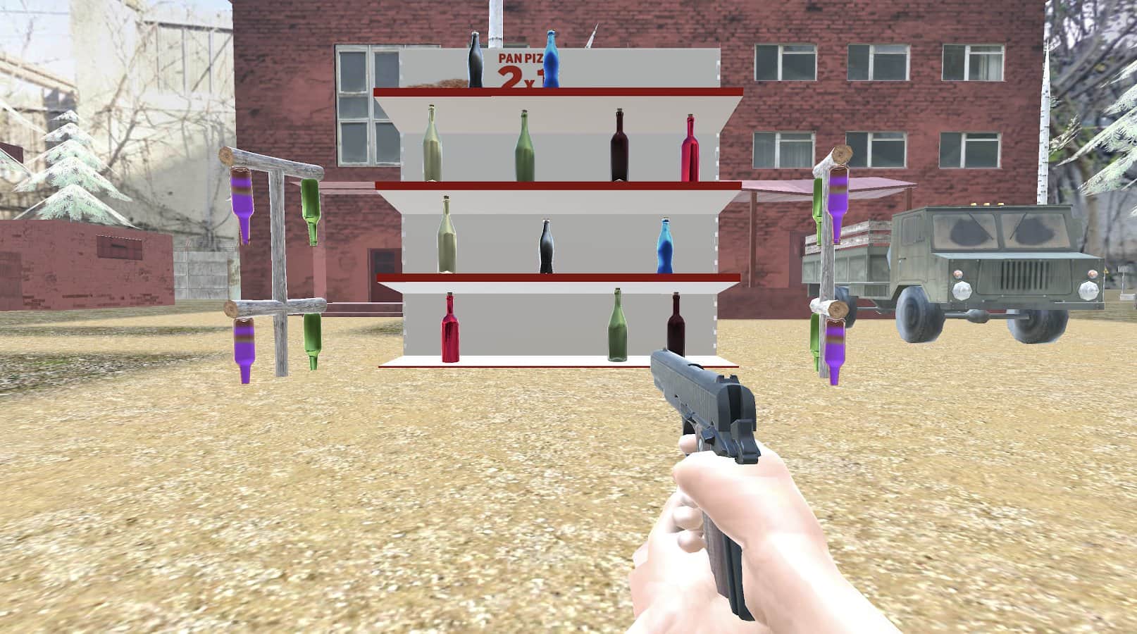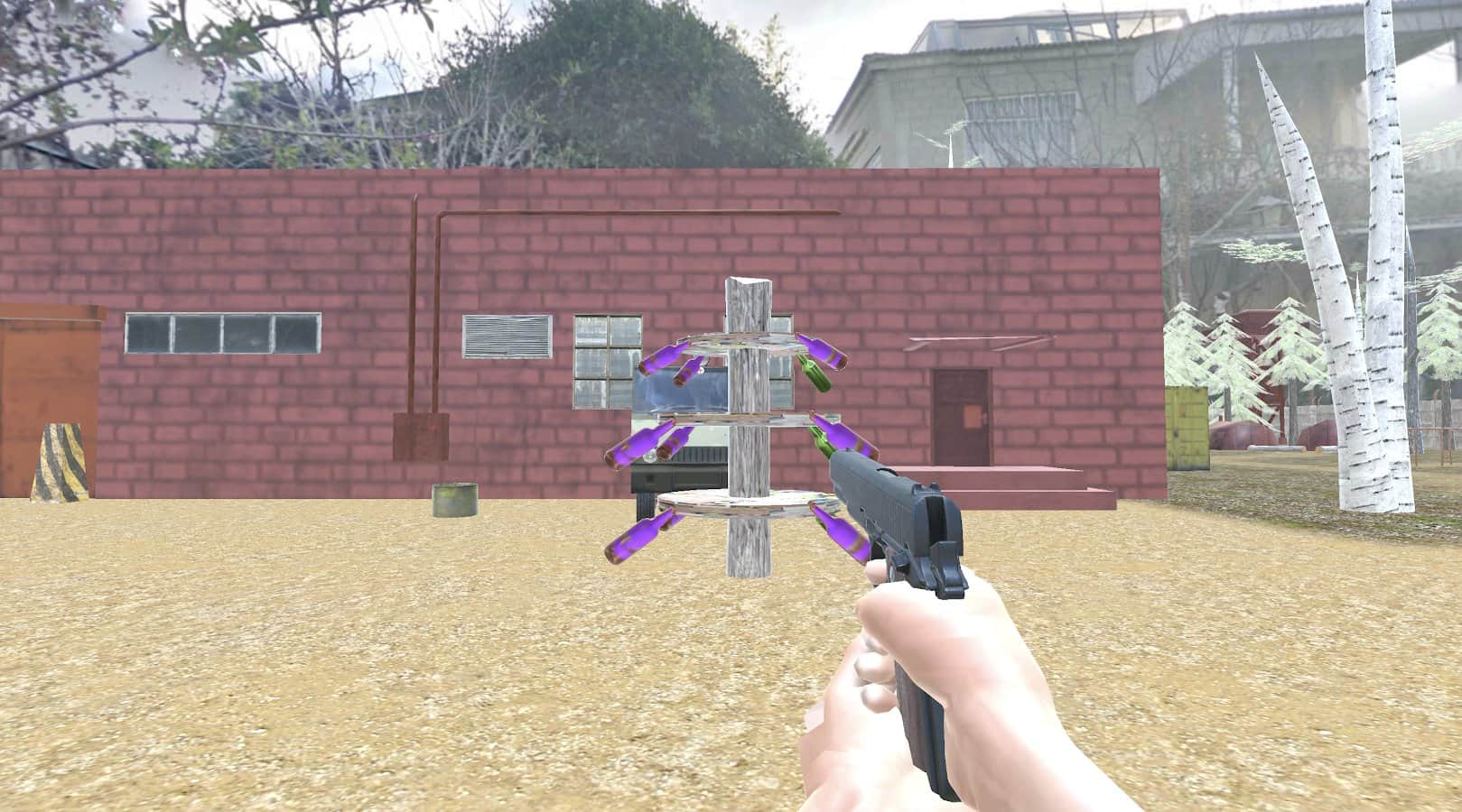 Start target practice with weapons of the bottles to in the future in other games not to miss and hit other players with precise accuracy. The bottles will be easy and difficult places. The difficulty will increase, they will begin to rotate on different surfaces or become further away from you. More than 300 tests a wide range of weapons, multiple modes (including free and on time) and full concentration on the order. Visit the hidden beach, the basis of military training and other maps, where everything is happening.