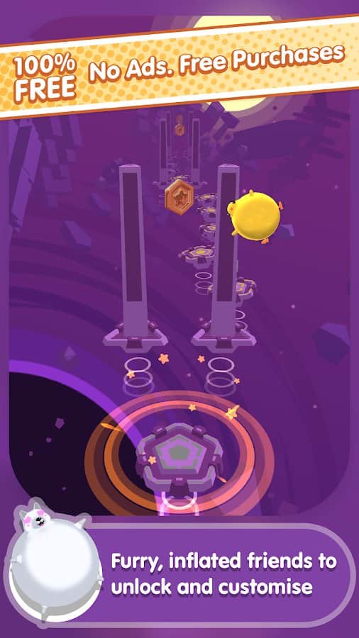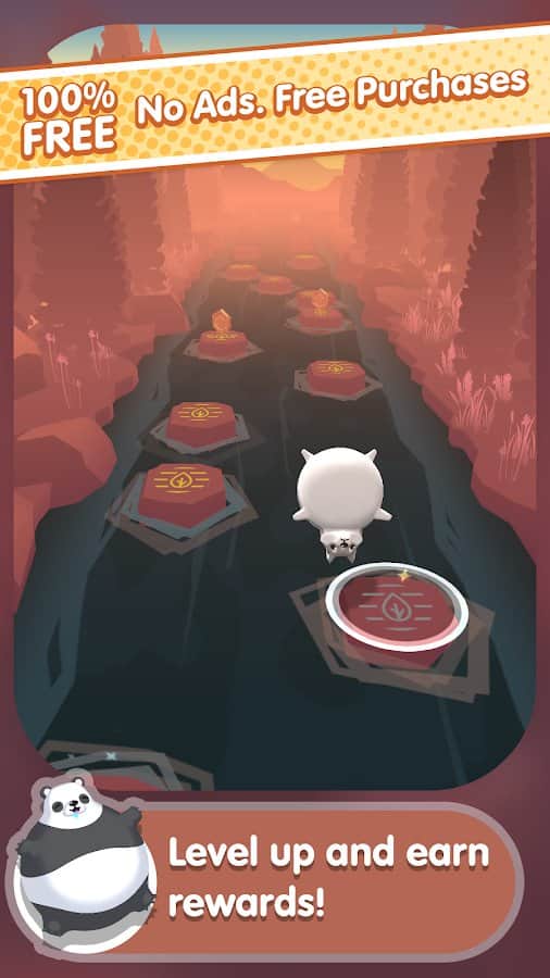 Keep the rhythm and at the same time accurately get on the platforms to increase your own score with the points you receive and have more rewards! After each level, new ones are unlocked, and additionally you get the opportunity to purchase other spherical animals: a bear, a panda, a dog, a penguin, etc. There are more than 40 levels in five different worlds, and certain songs from different genres sound in them. You never know what's going to happen ahead, so don't be afraid of platforms moving up or down, gates closing and other mechanisms.