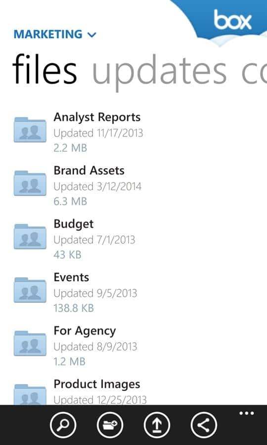 box is a program for windows phone that allows you to 5 Gb. free space on cloud service Box.com. Share any content is now a lot easier. Features:
