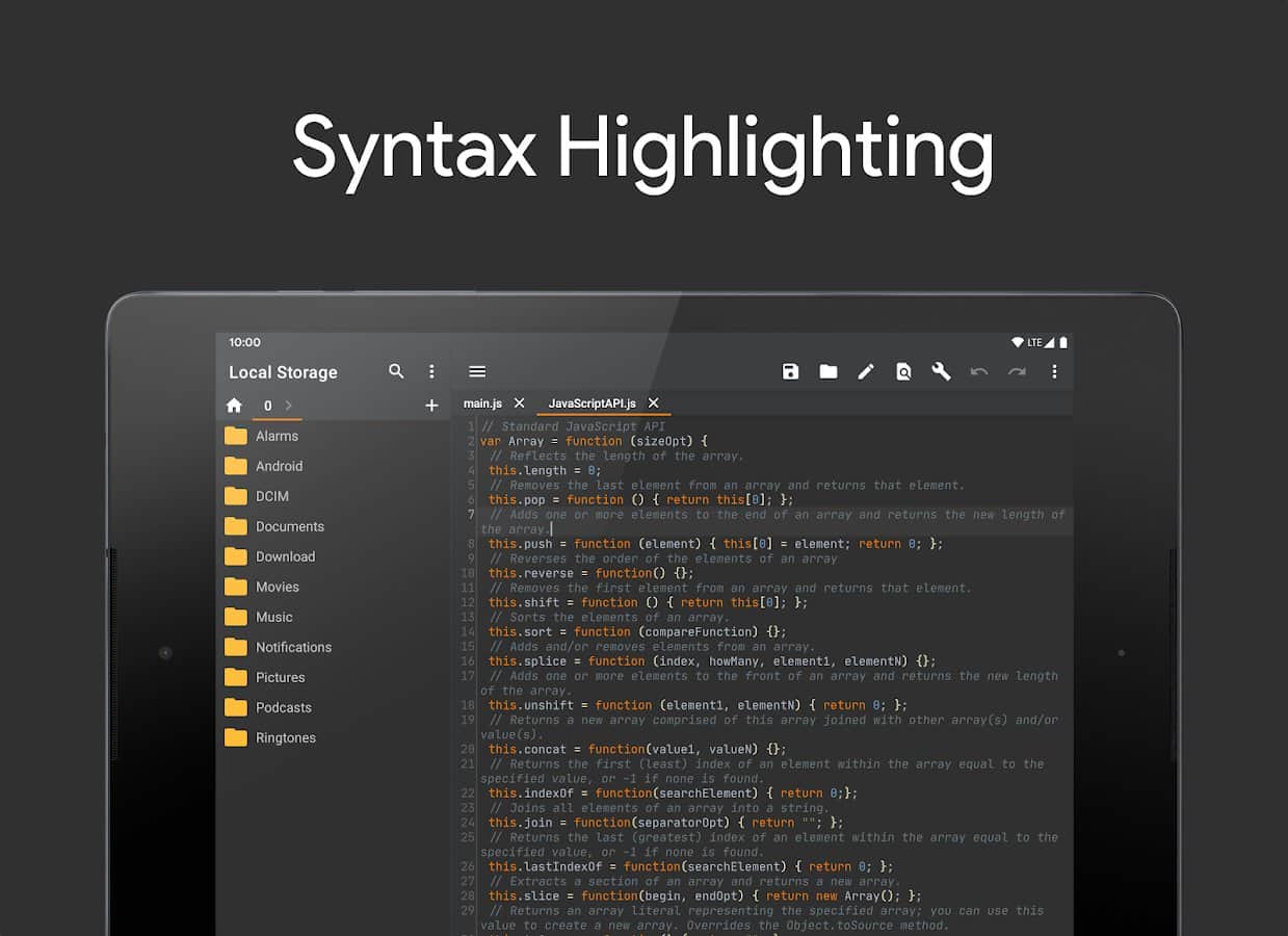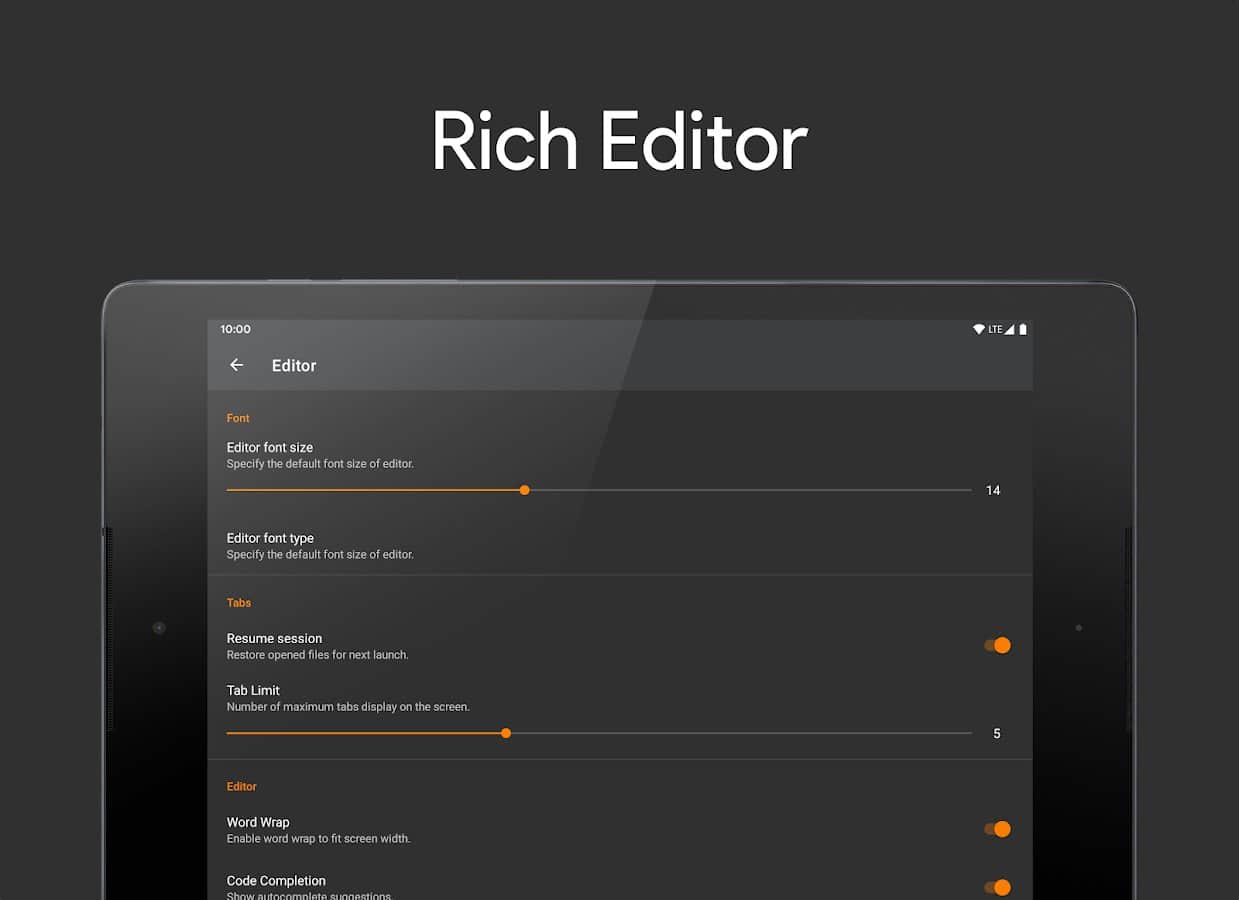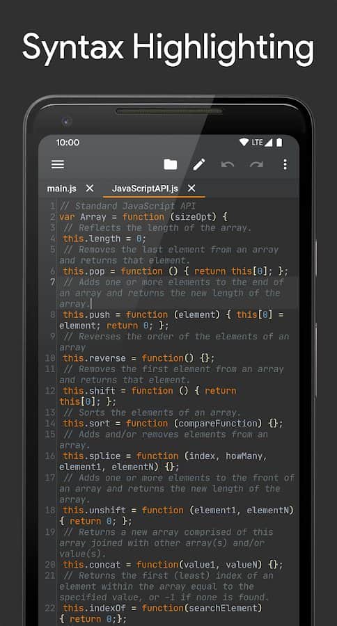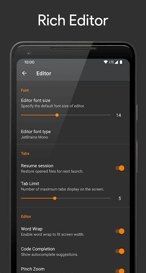 App Brackeys IDE will help you recognize and edit some programming languages, ActionScript, C, C ++, C #, HTML, Java, JavaScript, Json, Kotlin, Lisp, Lua, Markdown, Python, Shell, SQL, Visual Basic, XML. Instantly see the correct code will help syntax highlighting and a built-in editor will provide basic conclusion, given the contents of each file. Use key words, change field names fix changes, highlight errors in code by highlighting. There is an AutoSave feature changes, as well as with the button "cancel" you can always go back gazed upon acceptance of any error.