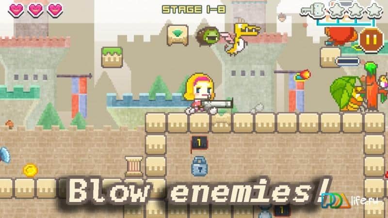 Brave Rascals is a classic platform game made in retro style. The gameplay is in full compliance with the laws of the genre, run, jump, shoot, collect prizes, stars, fight bosses, improve your character, upgrade your weapons. The storyline is actually in all games of this direction is rather superficial and anything about what is happening we know little. But the game world is crafted wonderfully, with impressive levels with intricate structures, platforms, traps, corridors, shafts, staircases, dozens of enemies all this gives the game a unique variety. Everything else is Brave Rascals can be done at two levels of difficulty for fans to gather bonuses and shoot in a relaxed mode suitable level for beginners, but the mode of the professional will require not only skill, but experience.