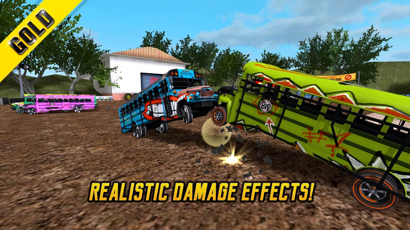 Bus Demolition Derby GOLD+ - take control of your school bus and take part in competitions in a Demolition Derby. Drive your truck to victory, improving it as the game progresses, adding a powerful engine and impenetrable armor. Drive your bus up to the maximum speeds and crash into opponents, dealing maximum damage. This game will delight you with its maximum magnitude and the incredible collisions and destruction. Choose your bus from in the game, and paint it with bright colors and add fun elements. Realistic view of buses and most likely the destruction will delight players of all ages. Play and become a champion among fans of dangerous racing.