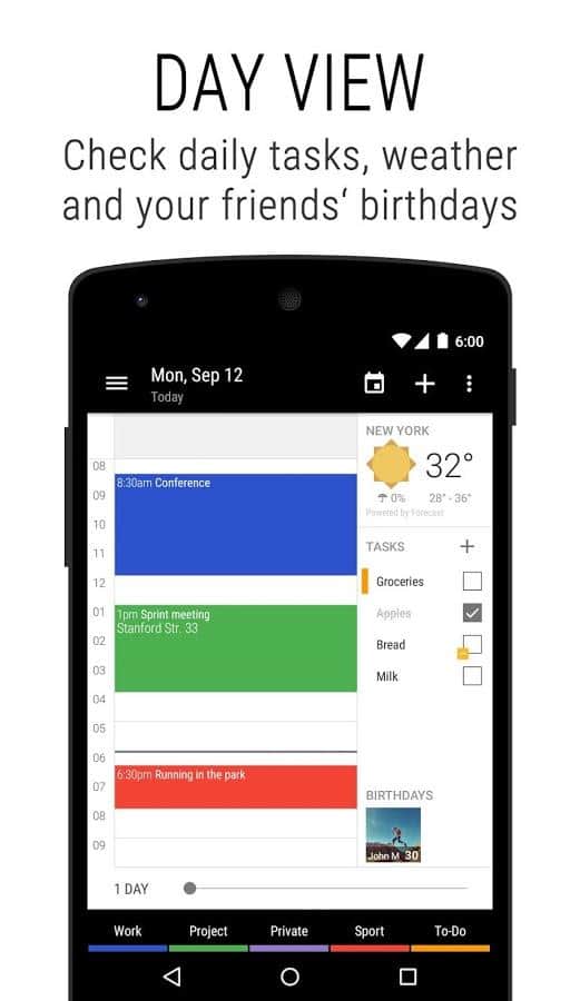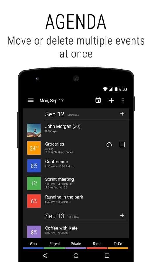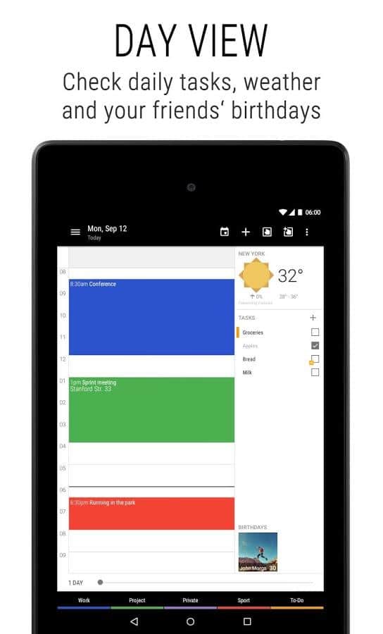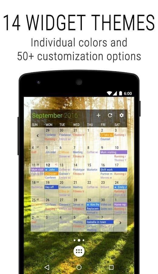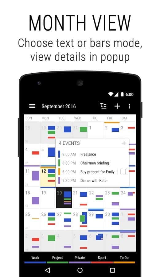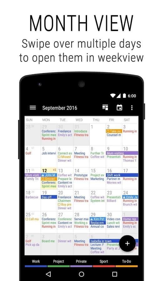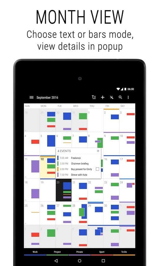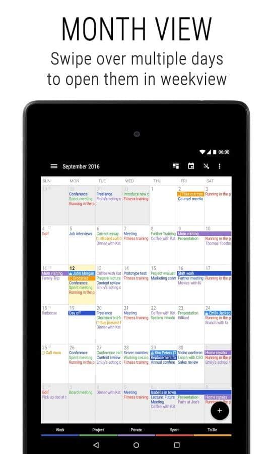 Business Calendar 2 is a Great app that will remember all your tasks for years to come. At first glance, a very simple calendar but it hides a lot of functions. From simple personalization, to associate a specific event with a contact number on the phone. Functions of this calendar, simply endless. Easy and intuitive interface, making it one of the best among calendars. Download and see for yourself.
