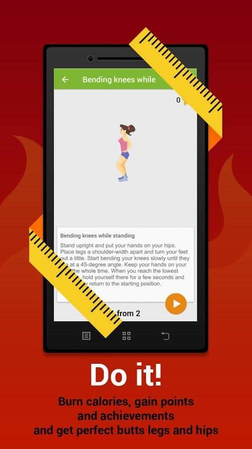 Butts, legs and hips workout - Want slim legs and neat ass? Now it's no problem! With this app you will be able to design a system customized workouts and adhering to it after some time, your form will change and will become much better. Using the built-in calculator, this app will calculate and select best system of training, so that with this individual approach, you will be able to achieve maximum results, in minimal lines.