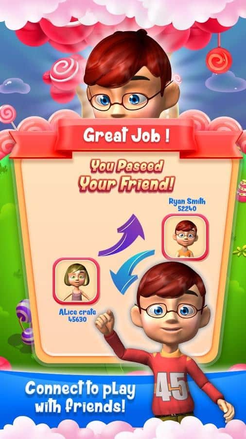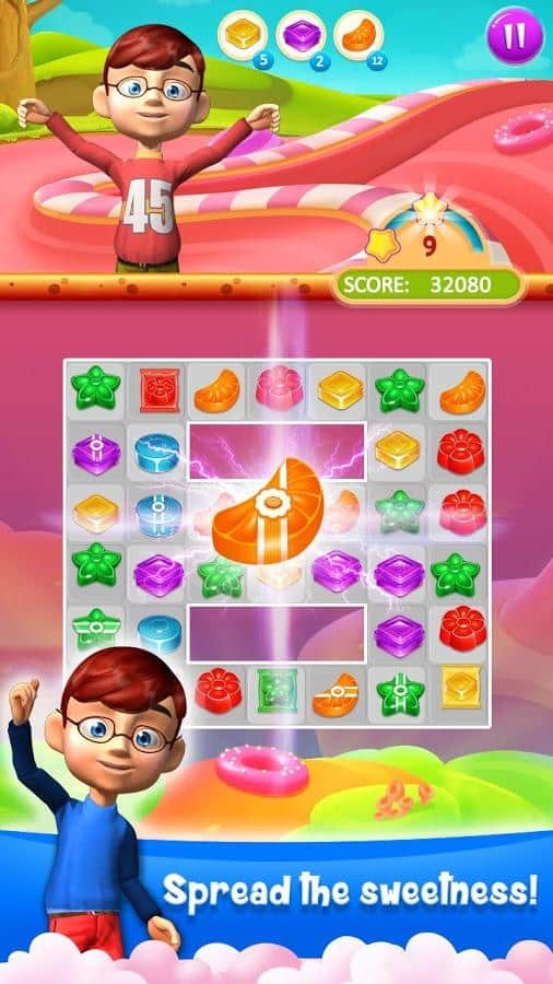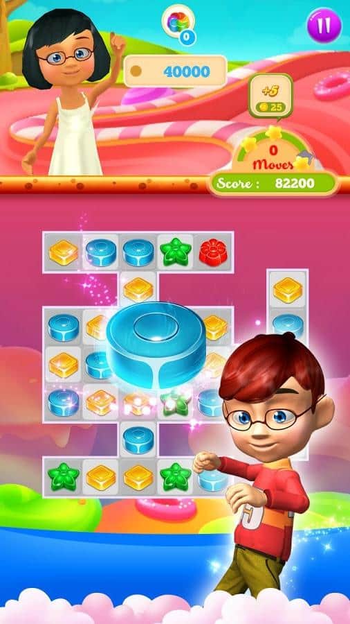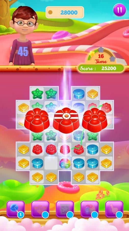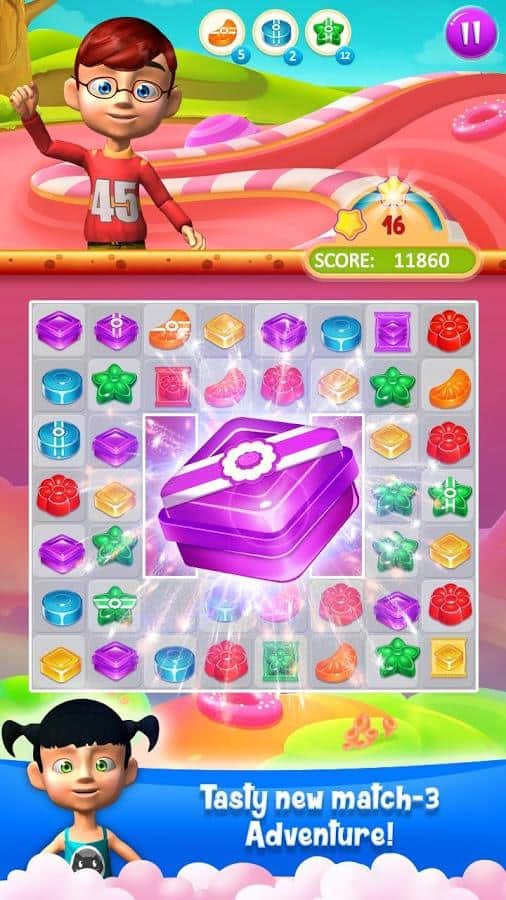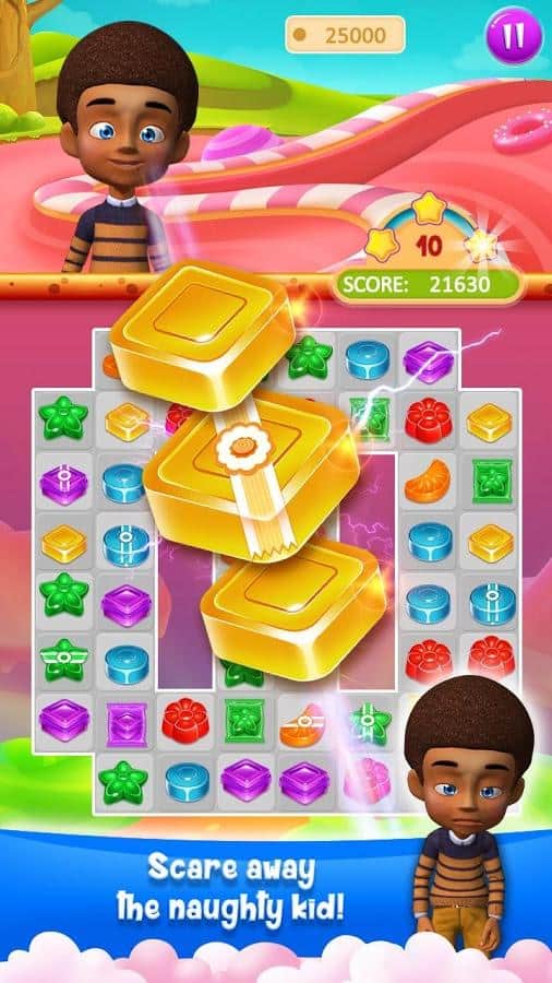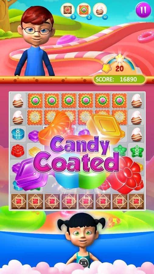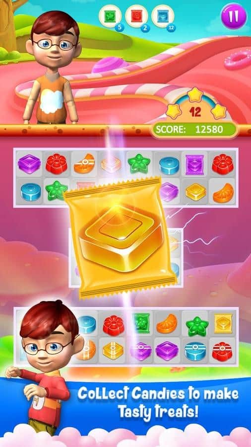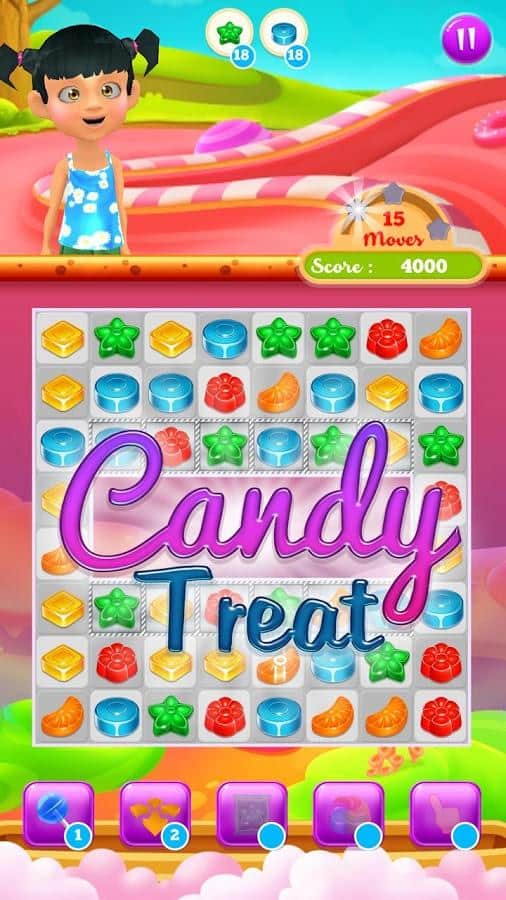 Candy Treats is the game genre three in a row on Android where you will help kids to collect candy. In this game you find yourself in a field where there are numerous candy, your task will be to collect them from the ranks and blow them up. Get ready for a fascinating journey through fairyland and help the children to discover new types of candy, performing various tasks. Create as long rows of candy and get various bonuses. Blast all the obstacles on your way and start a chain reaction. In this game you will find many different levels, cute characters and various bonuses.