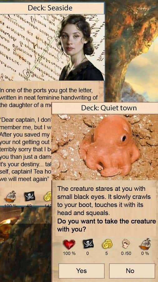Captain's Choice is a unique visual novel where you will embark on an exciting adventure and become a legendary pirate admiral, starting as a humble boy from a coastal town. In this captivating story, every decision you make matters, and the fate of the world and its inhabitants depends solely on you. The game offers you a unique opportunity to influence the course of events and determine the fates of the characters. Your decisions will determine who survives until the end of the story and who will rest at the bottom of the sea, shrouded in myths and mysteries. But remember that not only the fate of the world depends on your actions. Your personal life also plays an important role. You will have to choose a companion who will wait for you on the shore, and your choice may affect the course of your adventure.