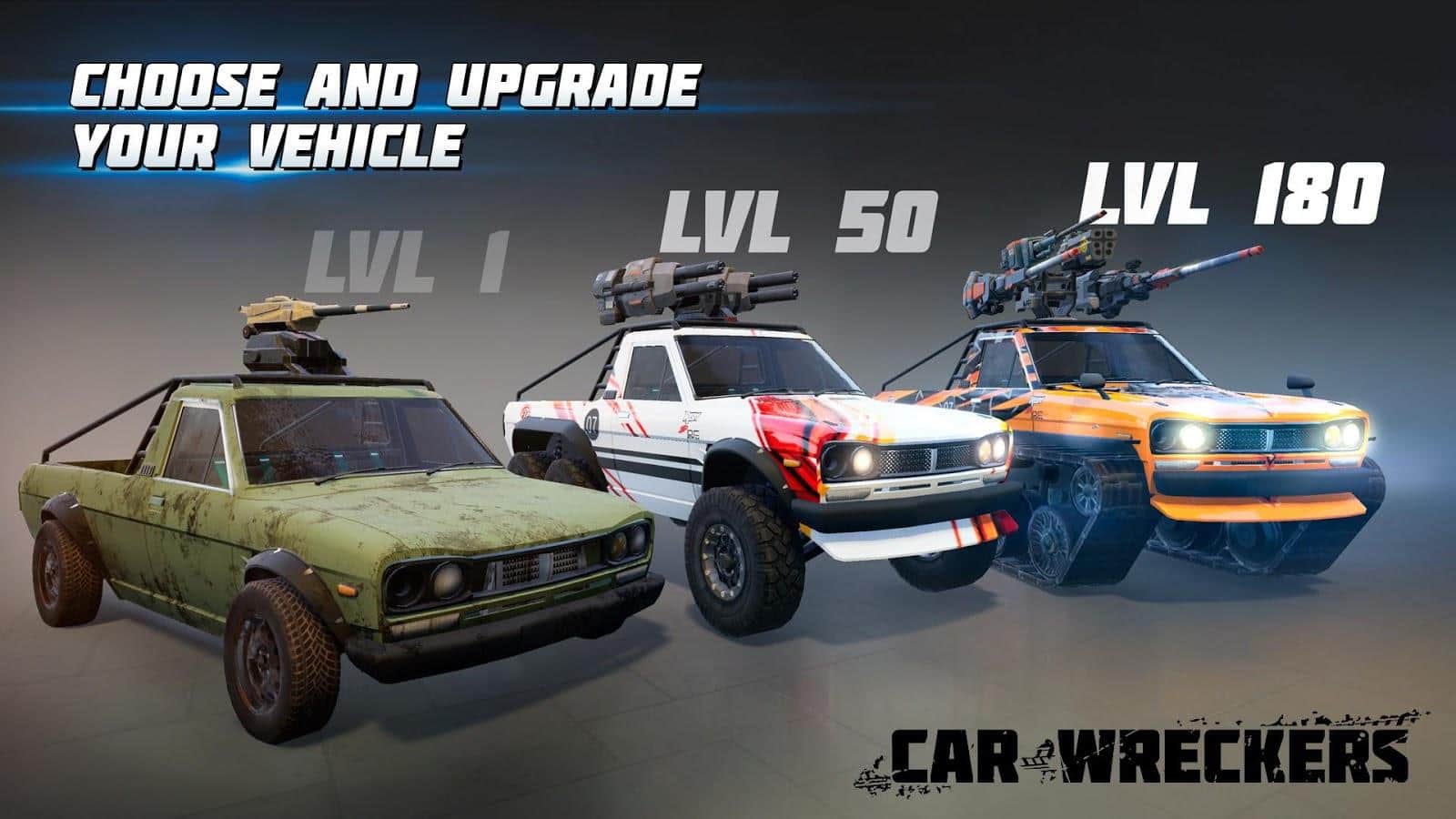 Car Wreckers - online PvP shooter on Android on combat cars. If you are tired of heavy tanks, but would like to drive and shoot, then this game is for you. Choose your car, improve its performance, weapons, abilities, and start the fight. You can customize your equipment to your taste and fighting style. You can collect high-speed action car, auto armored tank or a small car of robot - all this is only your choice and taste.