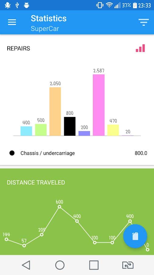 the statistics for budget control, fuel level, recording distance traveled, etc