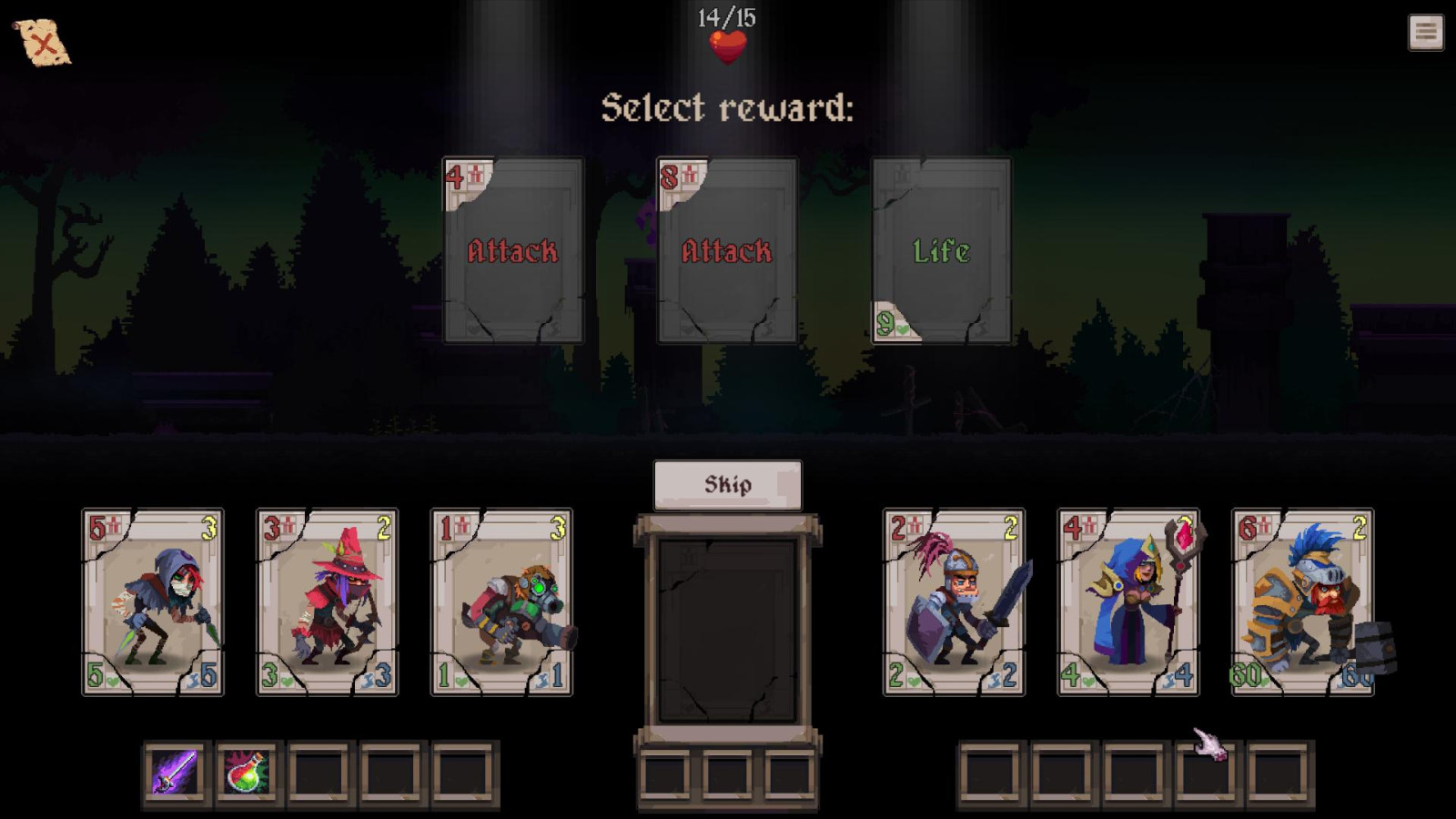 CardCraft - Create unbeatable fighters by combining the best abilities and traits of your heroes. Develop unique strategies, experiment with passive skills, and achieve powerful synergies. Each run in this roguelike game with management and auto-battler elements offers new combinations, unexpected challenges, and endless tactical possibilities. Assemble your dream team and prove that the strongest warrior is the one you created.