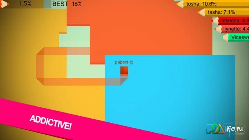 Cards.io – control the movement on the playing field paper maps and capture as much territory as possible okasheva it in your color. In this game you will control the map which moves across the field and leaves a trace of itself behind. Your task will be less time to paint as much territory as possible in color and rise on the leaderboard in the first place. Seize maximum territory and stay ahead of their rivals, be extremely careful not to collide with the trace of an opponent otherwise you lose. Carefully consider your actions and block site opponents.