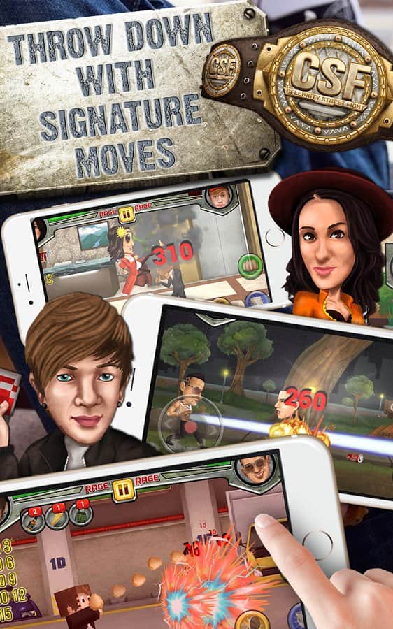 Celebrity Street Fight – comic fighting game that allows you to Polish the face of their favorite celebrity. A fighting game can be considered frivolous, but it doesn't make them bad. Caricature figures make players smile, and after the victory the joy you will be overflowing. Just beat your opponent and become famous all over the Internet. In the game with the help of special skills you can get belt of glory: bronze, silver and gold. Celebrities and different weapons brings into play the necessary charm that would make you to sit near the screens of your mobile devices.